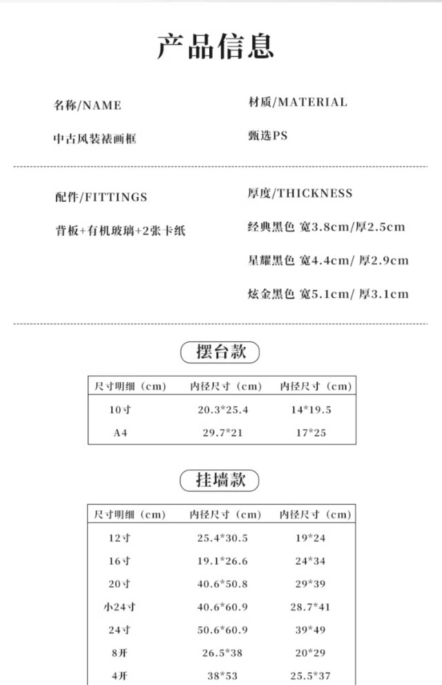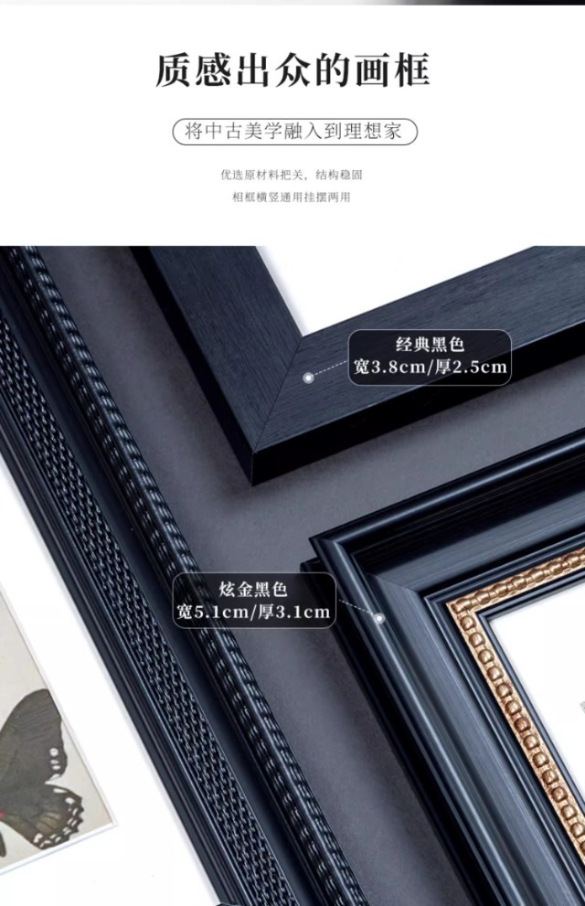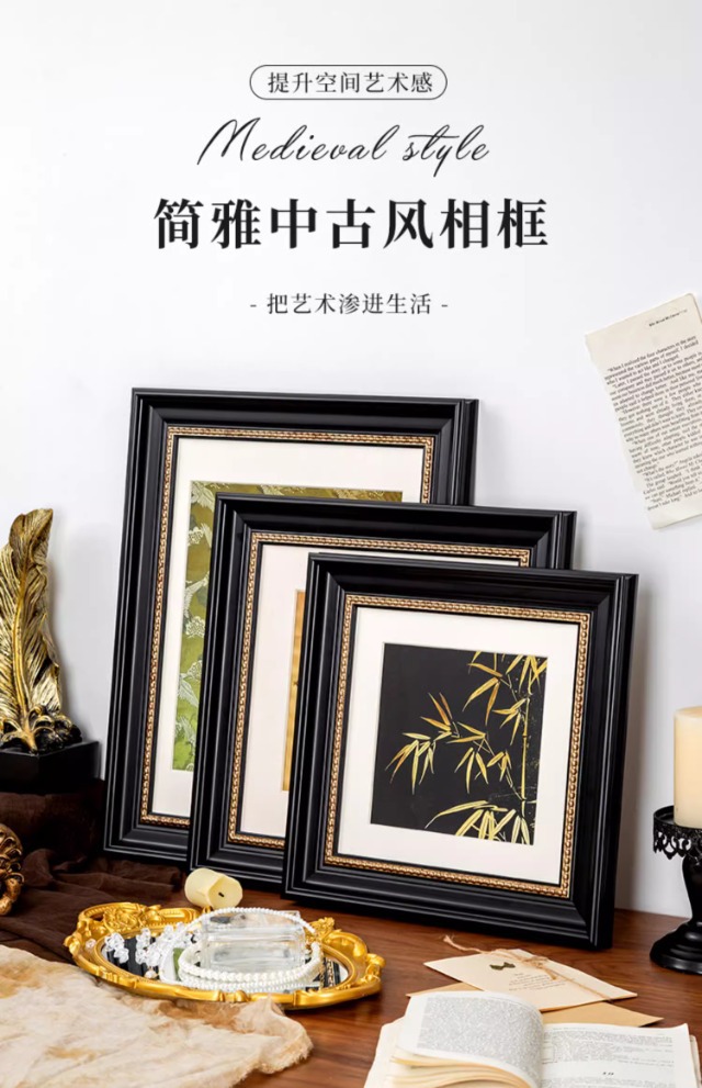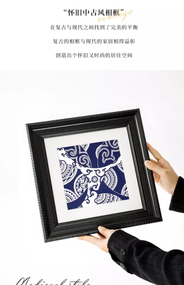 중국 고대 장식 그림 프레임 프랑스 검은 빈 프레임 광장 부드러운 사진 프레임 장식품 빈티지 유화 프레임스토어 가기