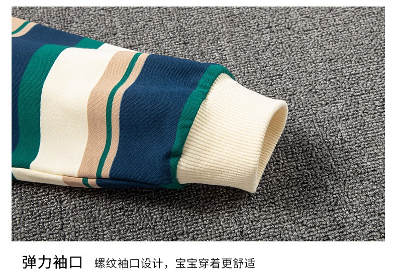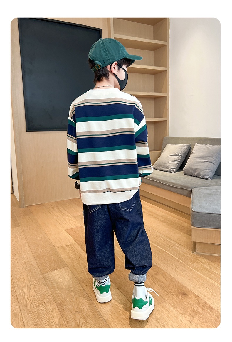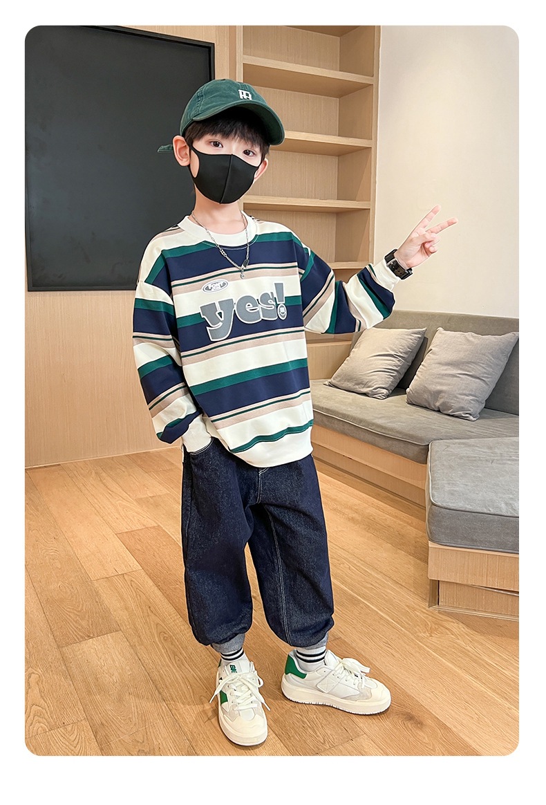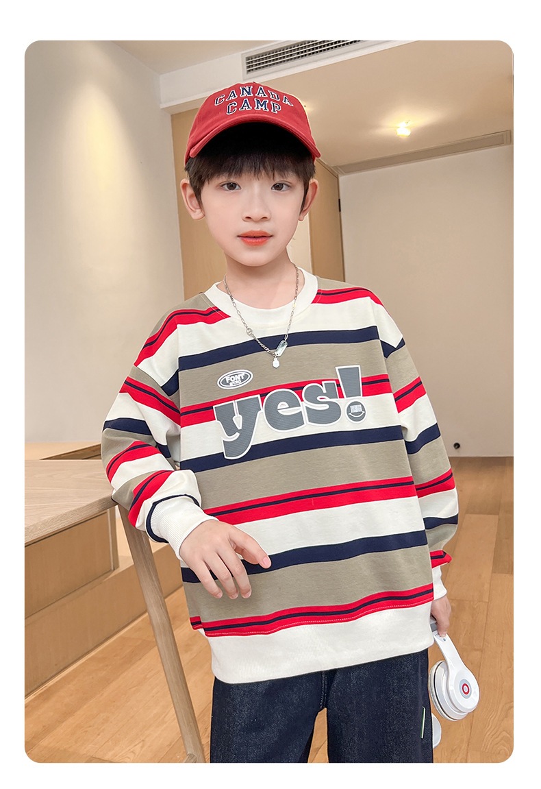 가을 새 어린이 둥근 목 땀 중소 소년 영어 편지 줄무늬 인쇄 싱글 피스 스포츠 캐주얼 탑스토어 가기