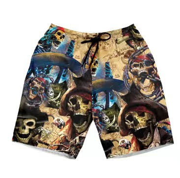 2025 유럽과 미국의 국경 느슨한 해변 바지 봄과 여름 해변 서핑 바지 3D 인쇄 패턴 유행 남성 반바지