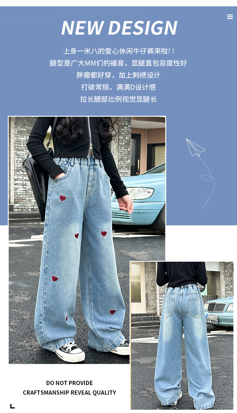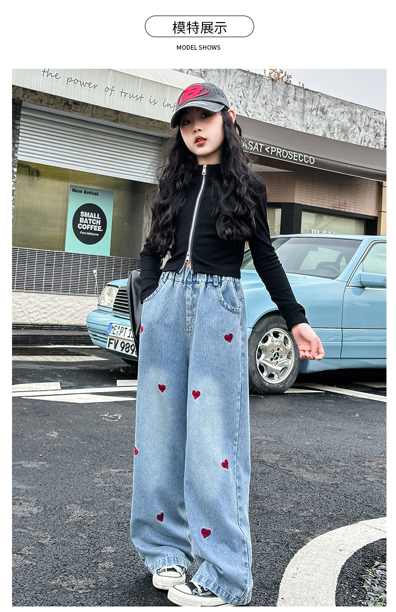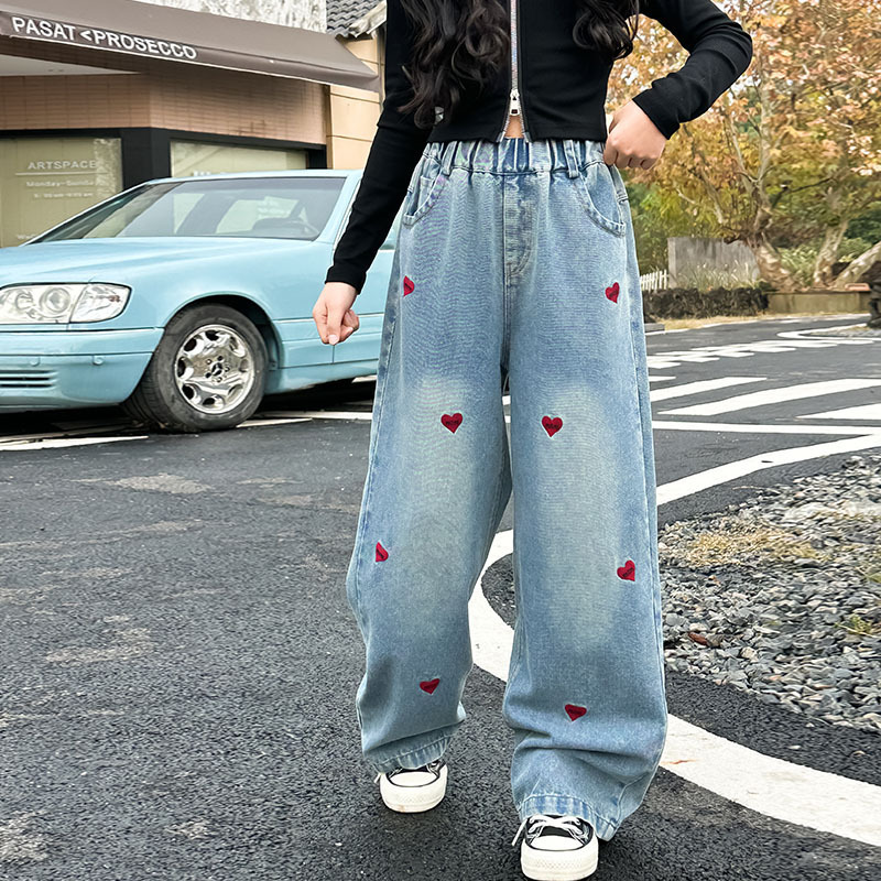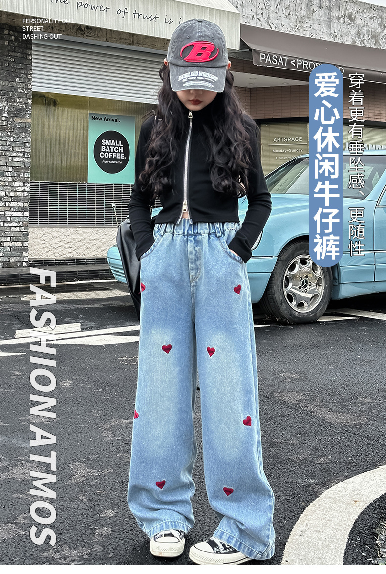 소녀의 봄과 가을 청바지 2025 새로운 패션 소녀 한국 스타일 세련된 사랑 청바지 국경스토어 가기