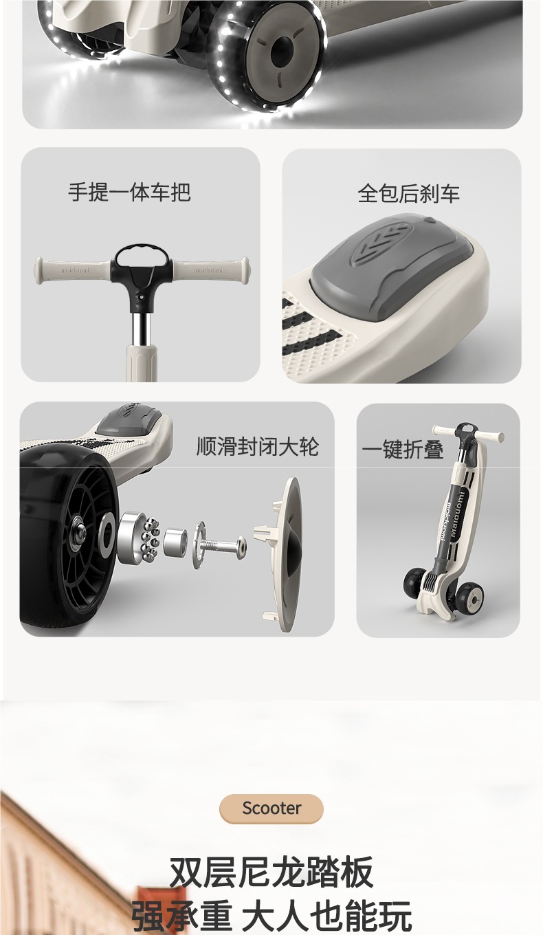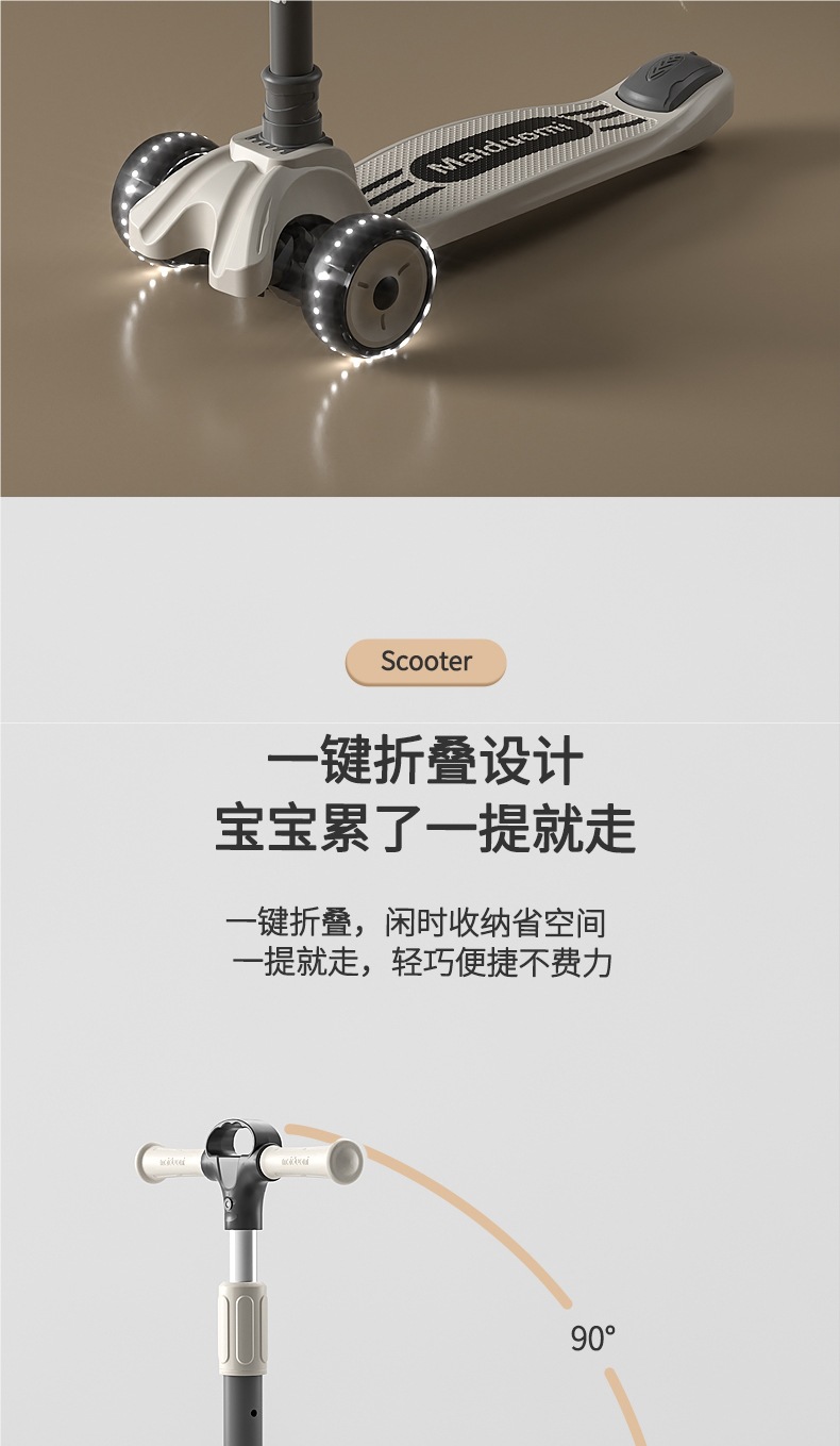 • Haoyue White [2-18세 사용 가능] 음악 및 조명 + 폐쇄형 플래시 휠/접이식 원피스