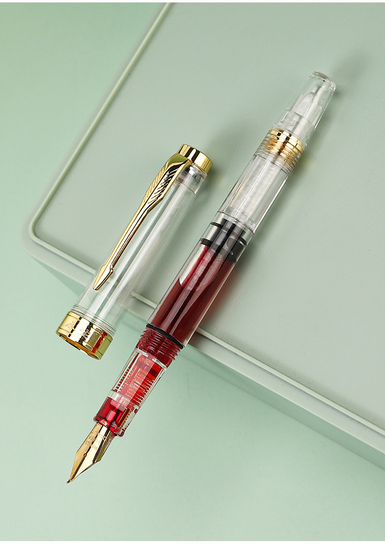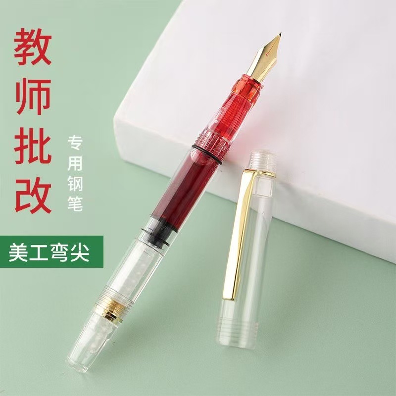 피스톤 대용량 투명 펜 교사 레드 펜 아트 포인트 훅 교사 교정 숙제 이리듐 펜