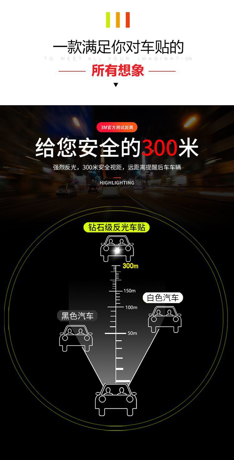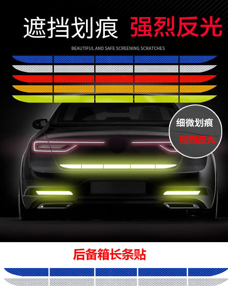 汽车后备箱反光贴纸长尾箱贴后杠防撞条划痕遮挡开门警示贴条