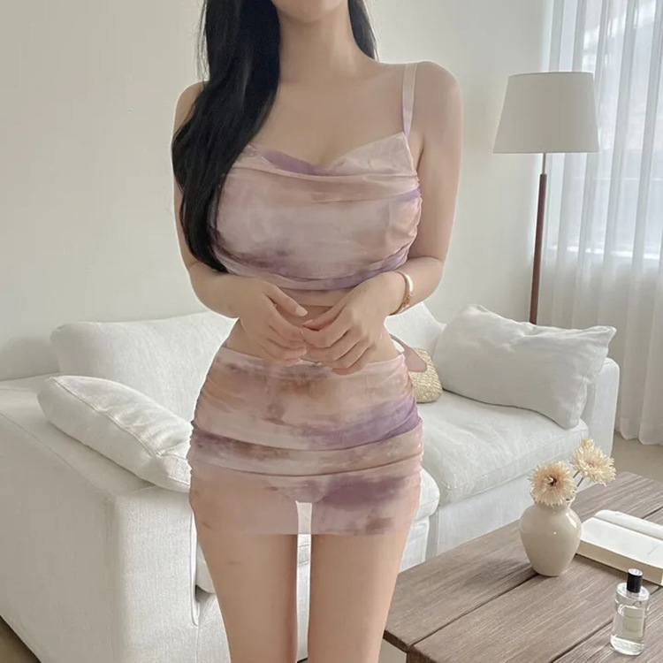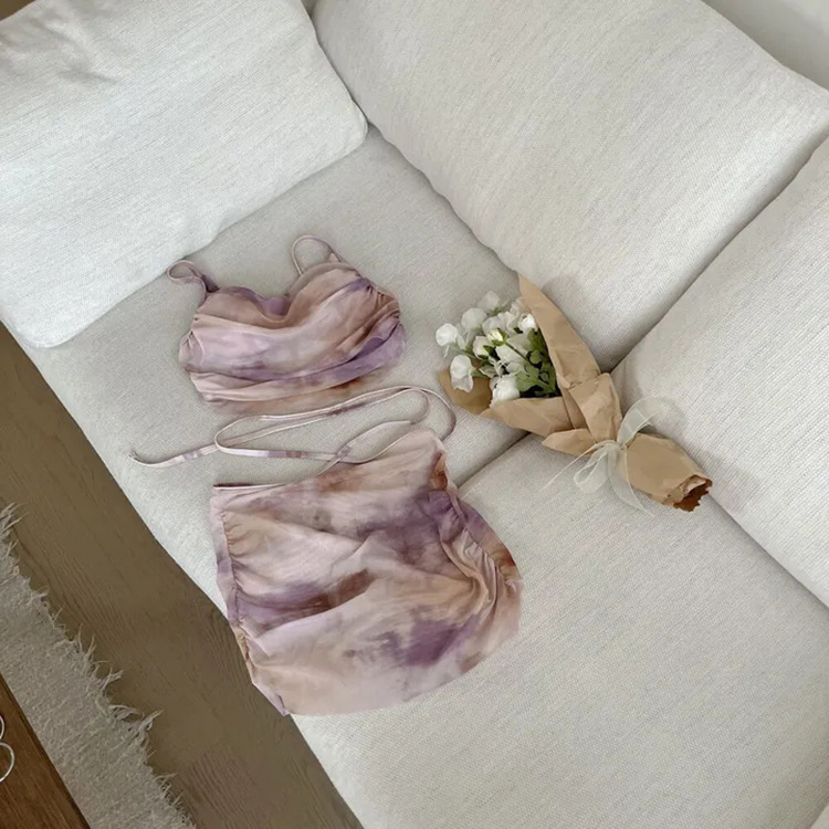 뜨거운 소녀 비키니 수영복 여성용 3 피스 세트 해변 휴가 작은 가슴 섹시한 온천 넥타이-염료 인쇄 수영복 여성스토어 가기