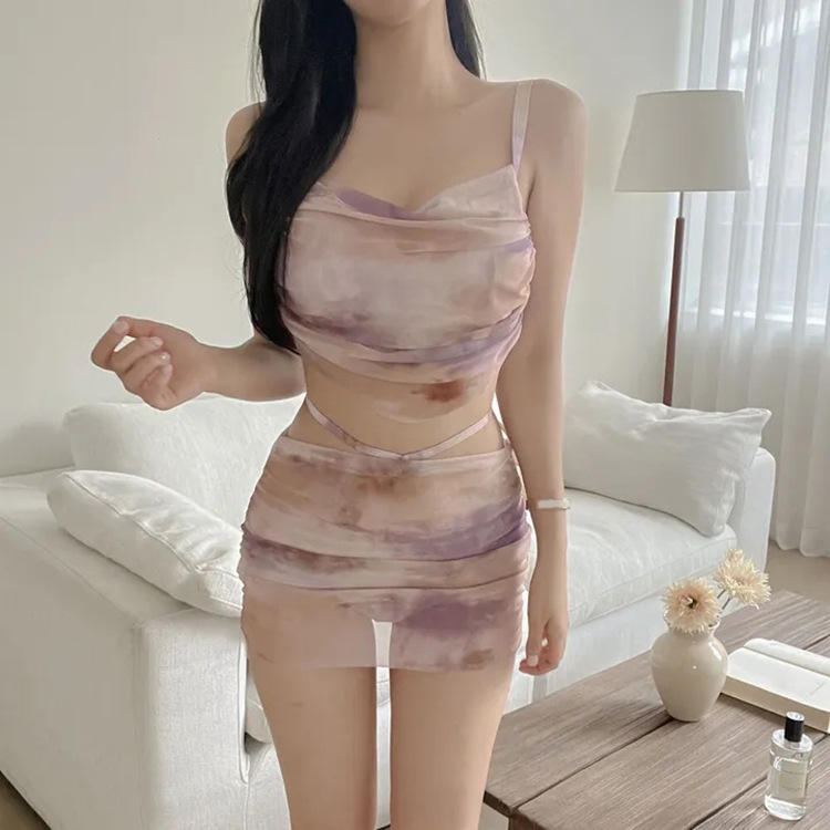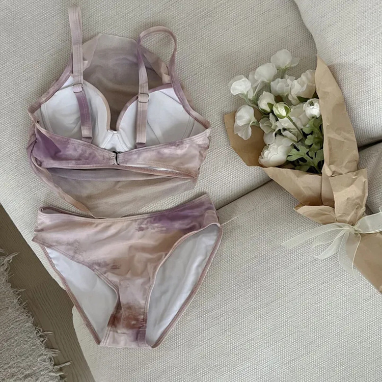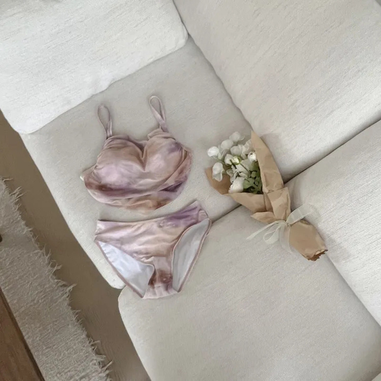 뜨거운 소녀 비키니 수영복 여성용 3 피스 세트 해변 휴가 작은 가슴 섹시한 온천 넥타이-염료 인쇄 수영복 여성