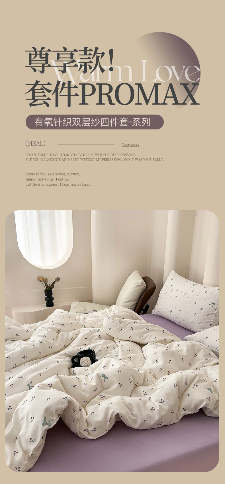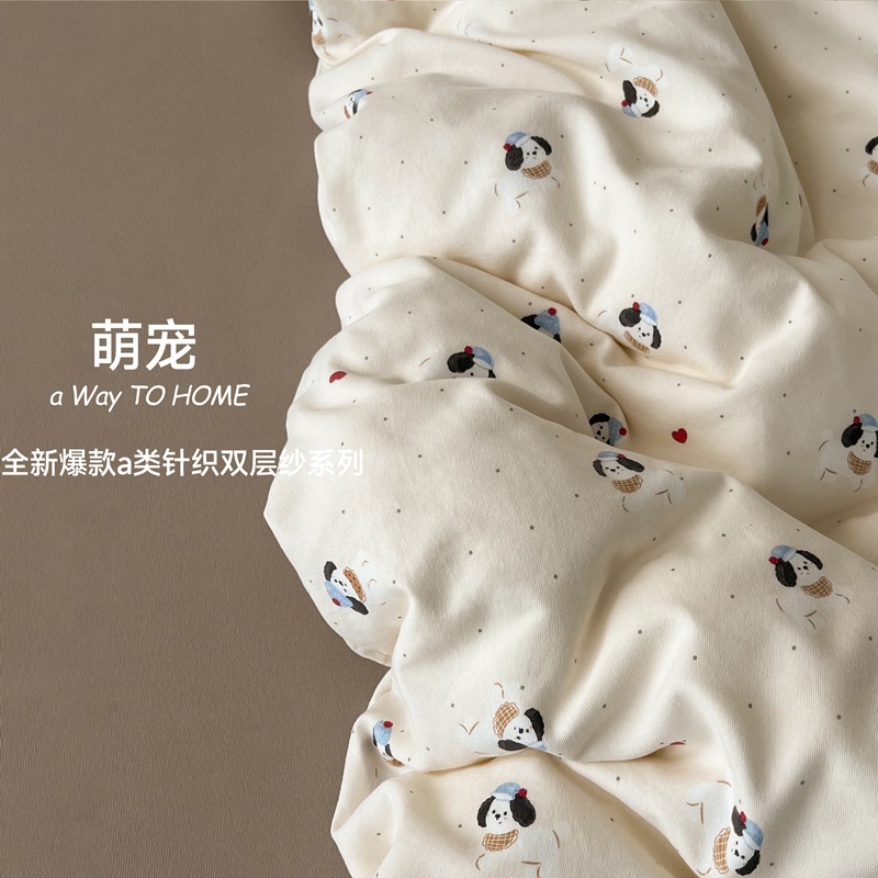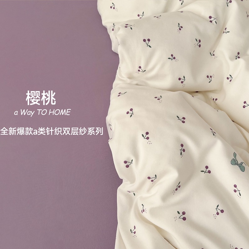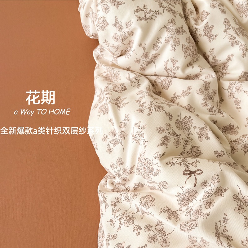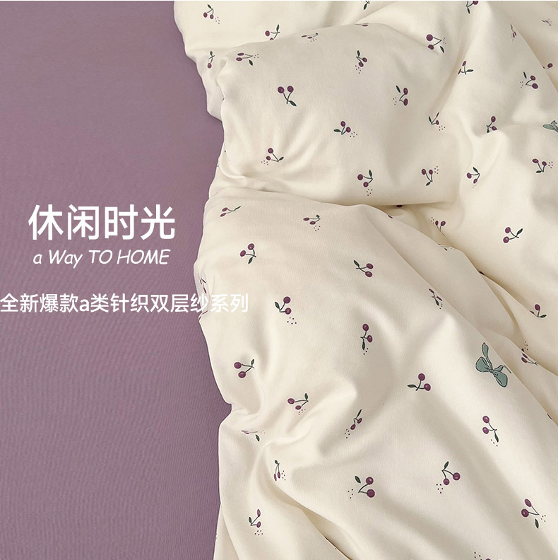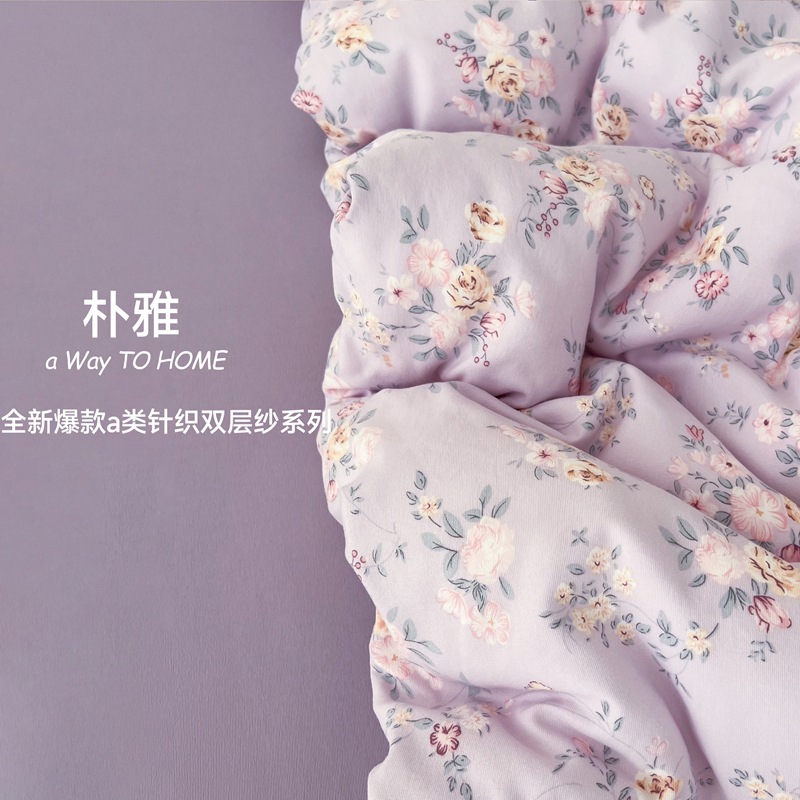 신형 A 니트 코튼 더블 레이어 원사 4 피스 세트 작은 꽃 3 피스 세트 퀼트 커버 침대 시트 침대 커버 학생 키트스토어 가기