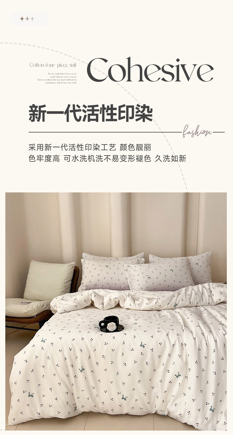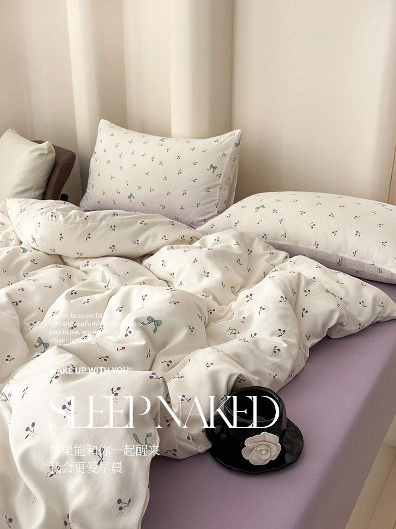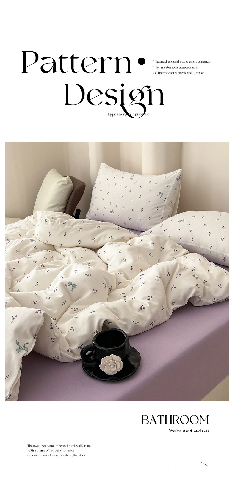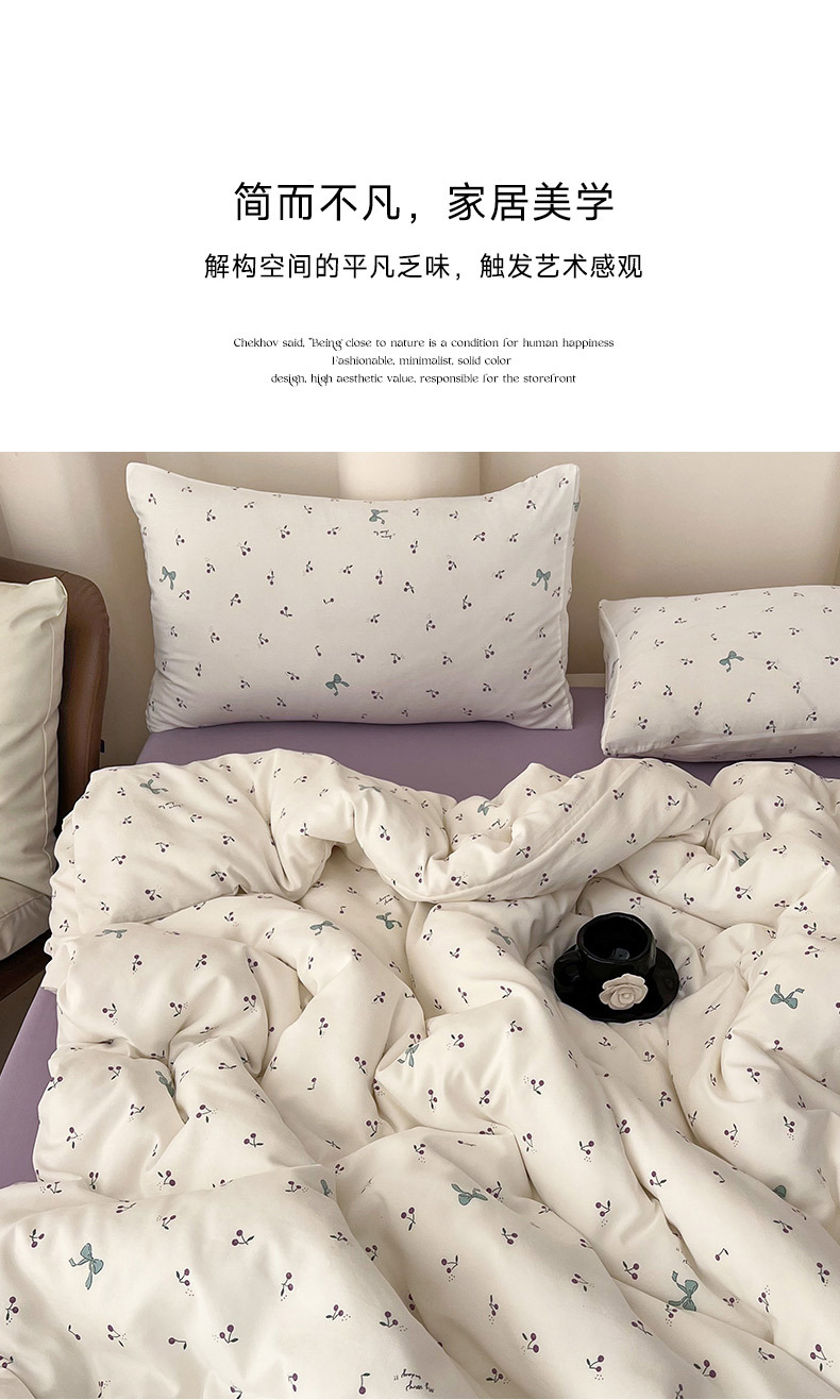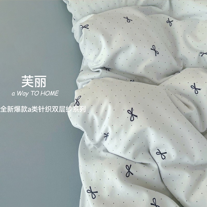 신형 A 니트 코튼 더블 레이어 원사 4 피스 세트 작은 꽃 3 피스 세트 퀼트 커버 침대 시트 침대 커버 학생 키트스토어 가기