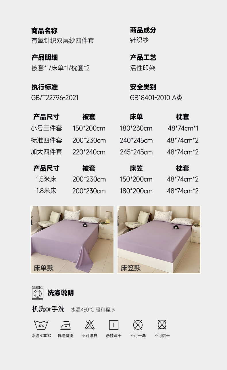 • 1.8m 침대시트 4종세트[이불커버 180*220]