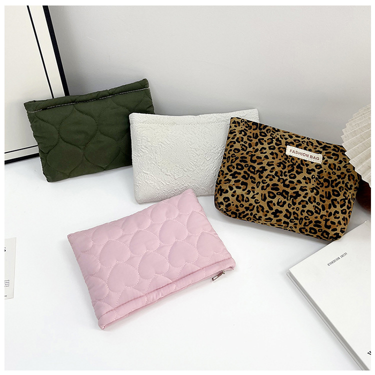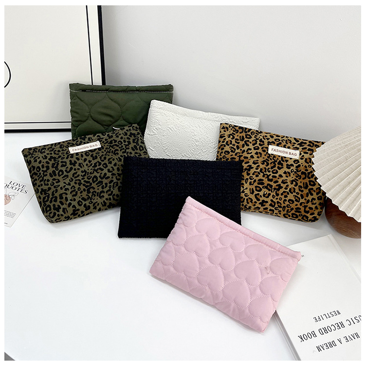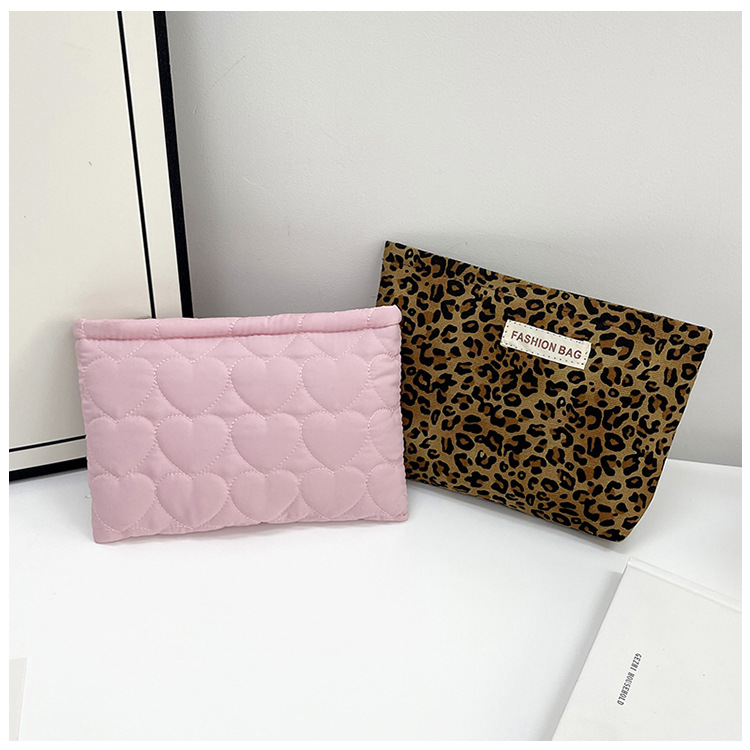 휴대용 사랑 레오파드 무늬 클러치 백 대용량 저장 화장품 가방 여행 패션 한국식 멀티 스타일 작은 광장 가방