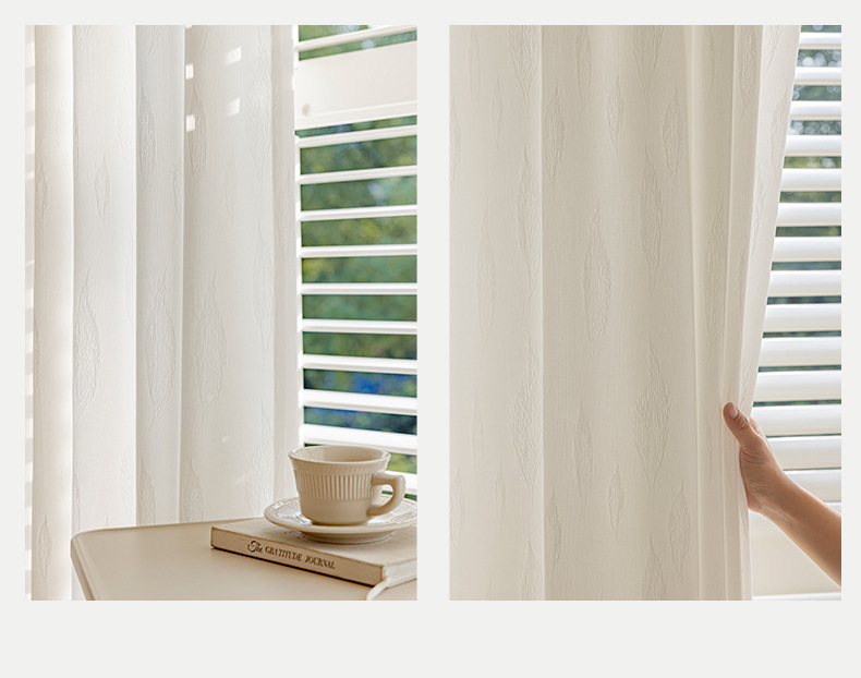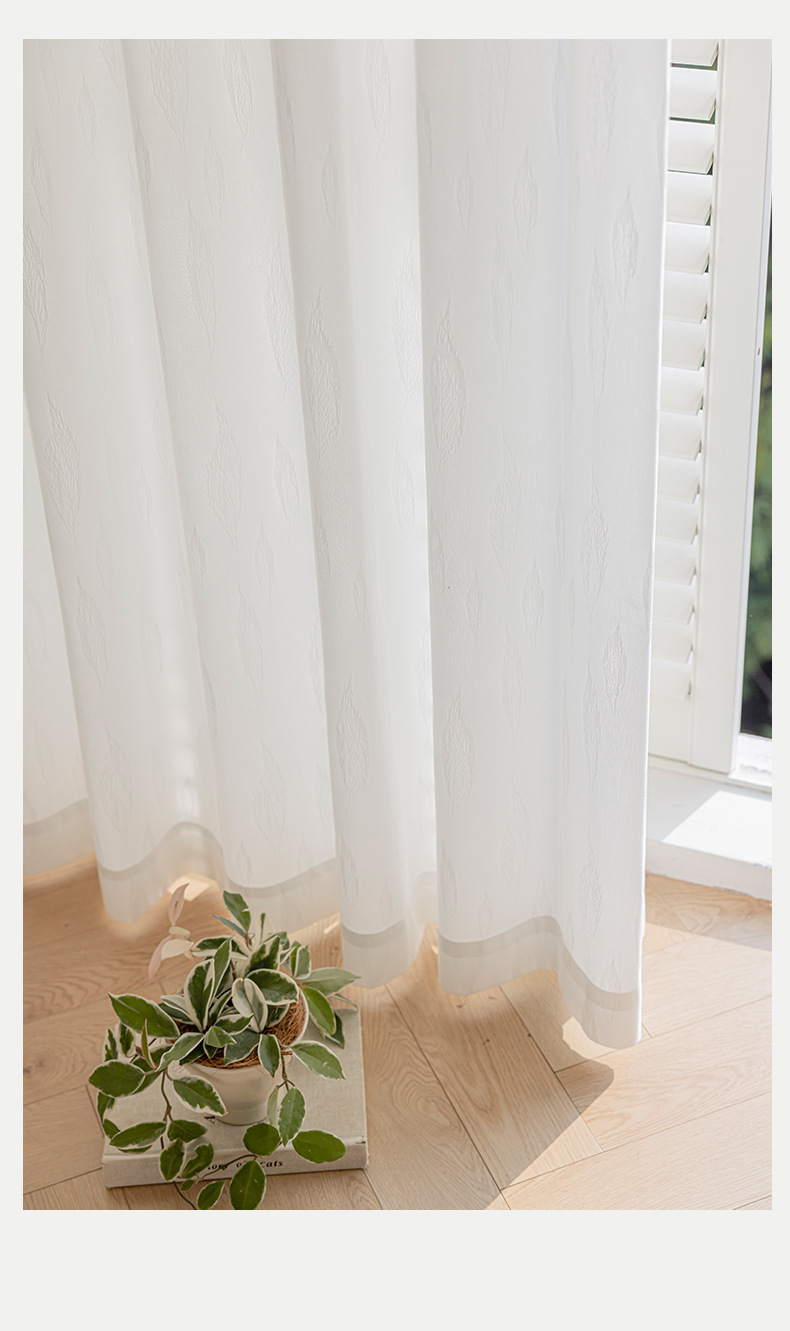 나뭇잎 거즈 커튼 거즈 커튼 투명 불투명 베이 창 거실 침실 흰색 거즈 Shaoxing Keqiao 발코니 흰색 창