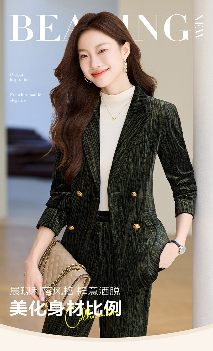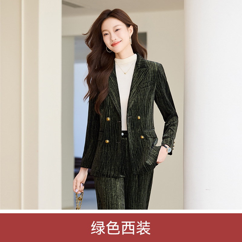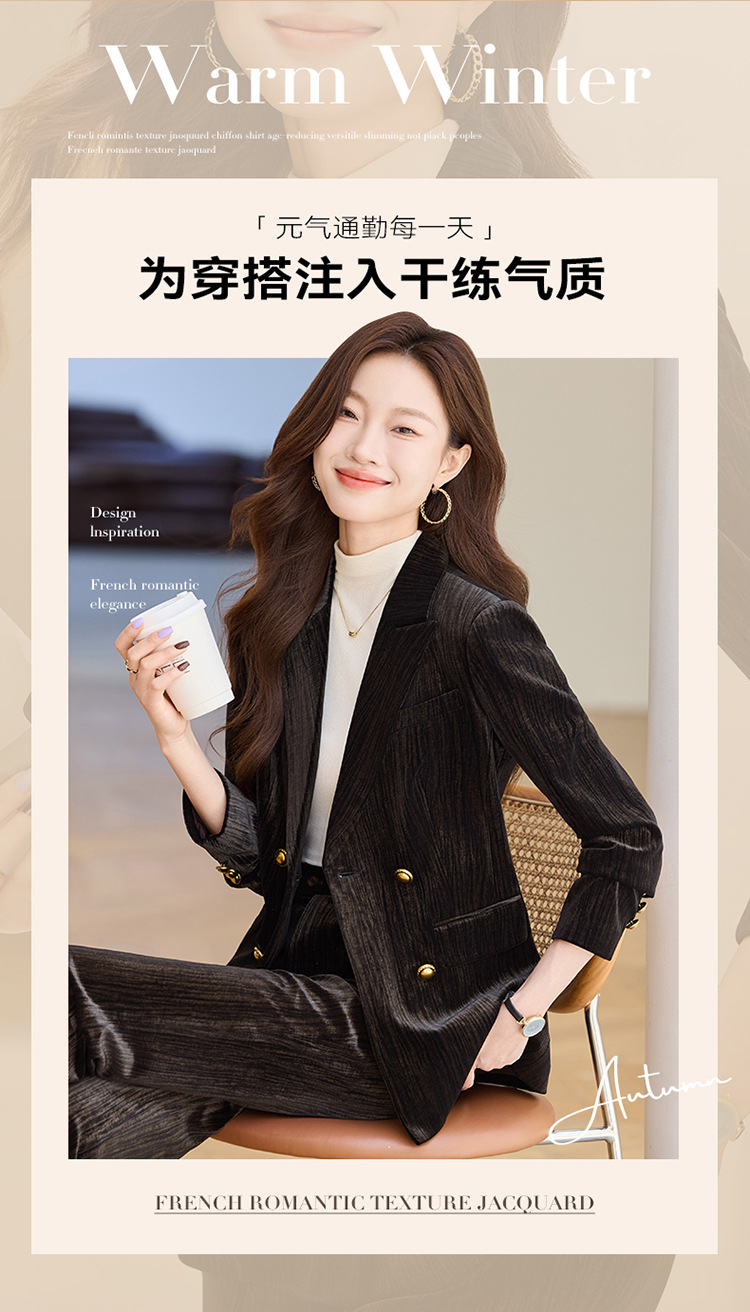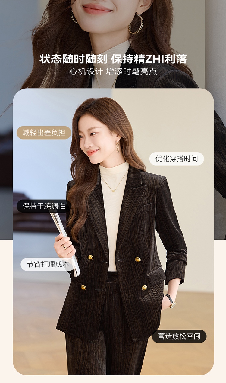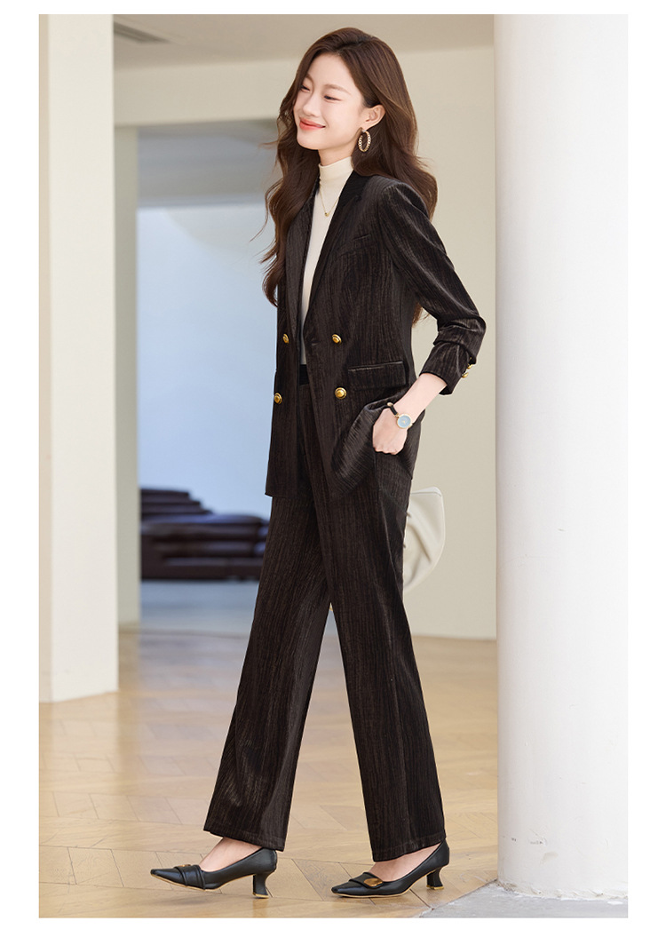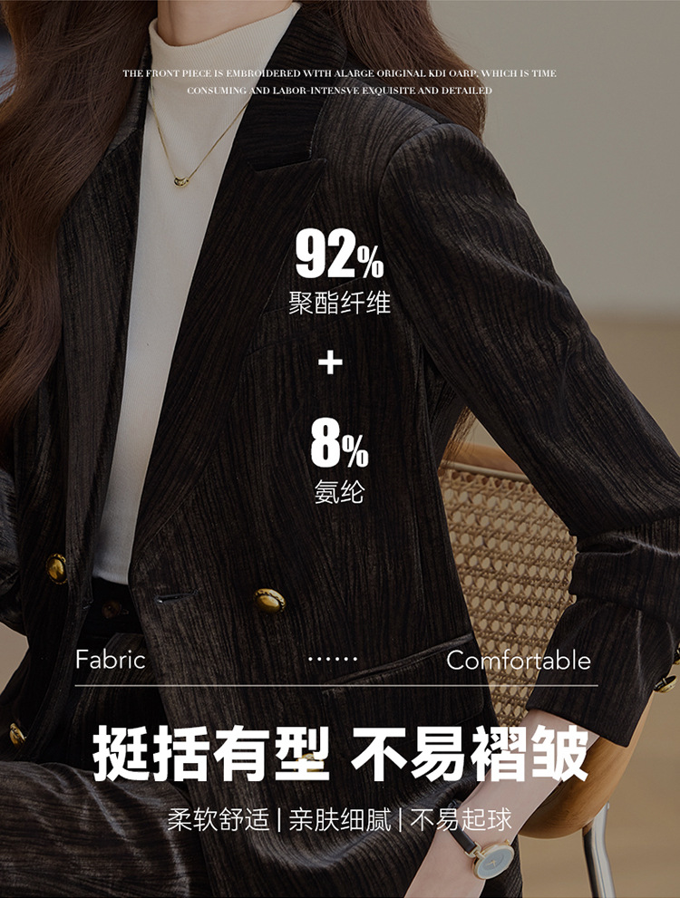 패션 세트 더블 브레스트 다크 브라운 유능한 기질 여성 비즈니스 골드 벨벳 세트 비즈니스 투피스 세트