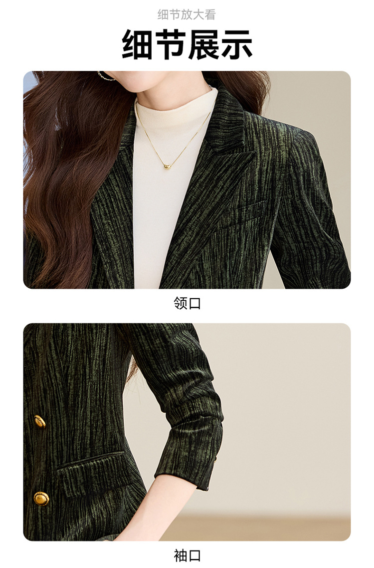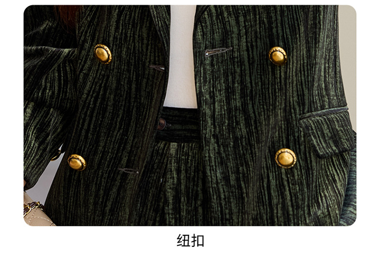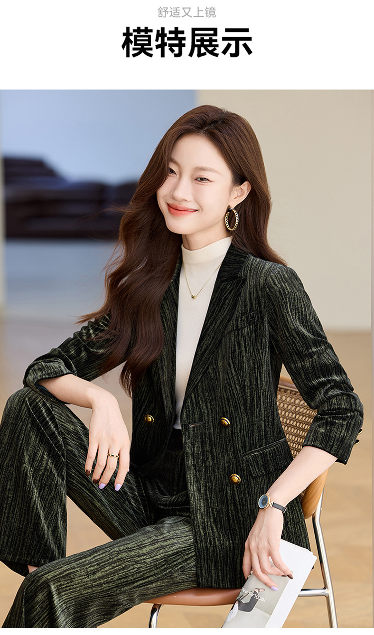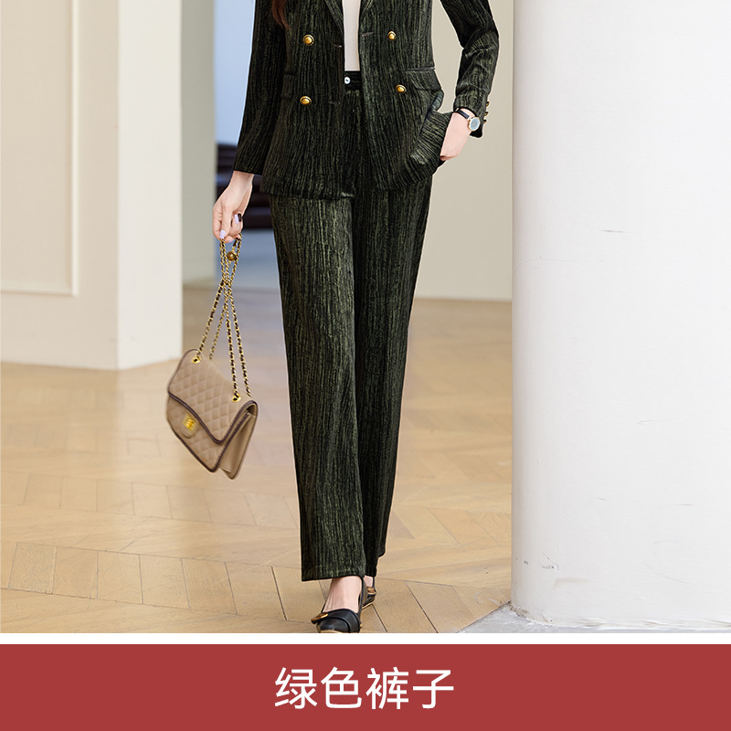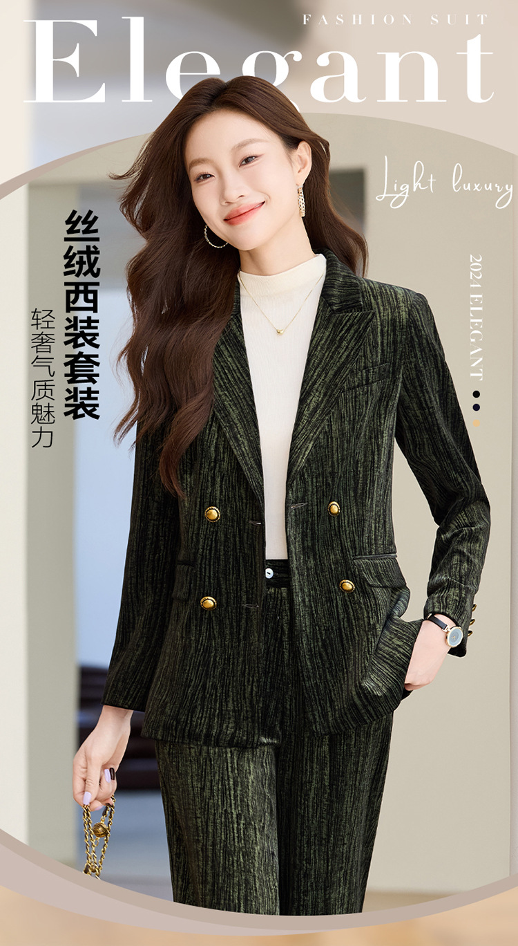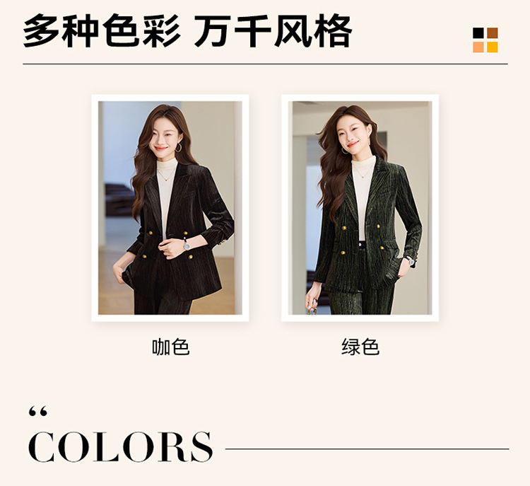 패션 세트 더블 브레스트 다크 브라운 유능한 기질 여성 비즈니스 골드 벨벳 세트 비즈니스 투피스 세트