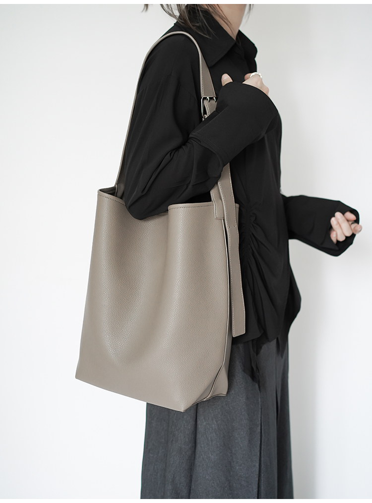 MAKILO 단색 간단한 리치 패턴 버킷 가방 게으른 스타일 캐주얼 토트 백 대용량 컴퓨터 크로스 바디 백