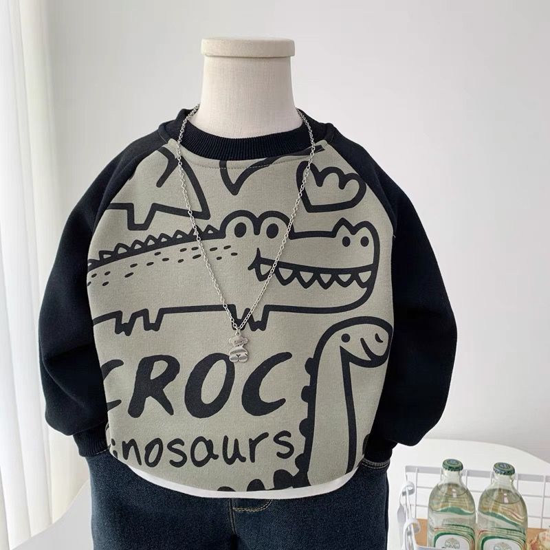 남아용 올인원 오리온 플리스 스웨트셔츠 가을 겨울 2025 신상 남아용 만화 공룡 상의 중학생용 두꺼운 풀오버스토어 가기