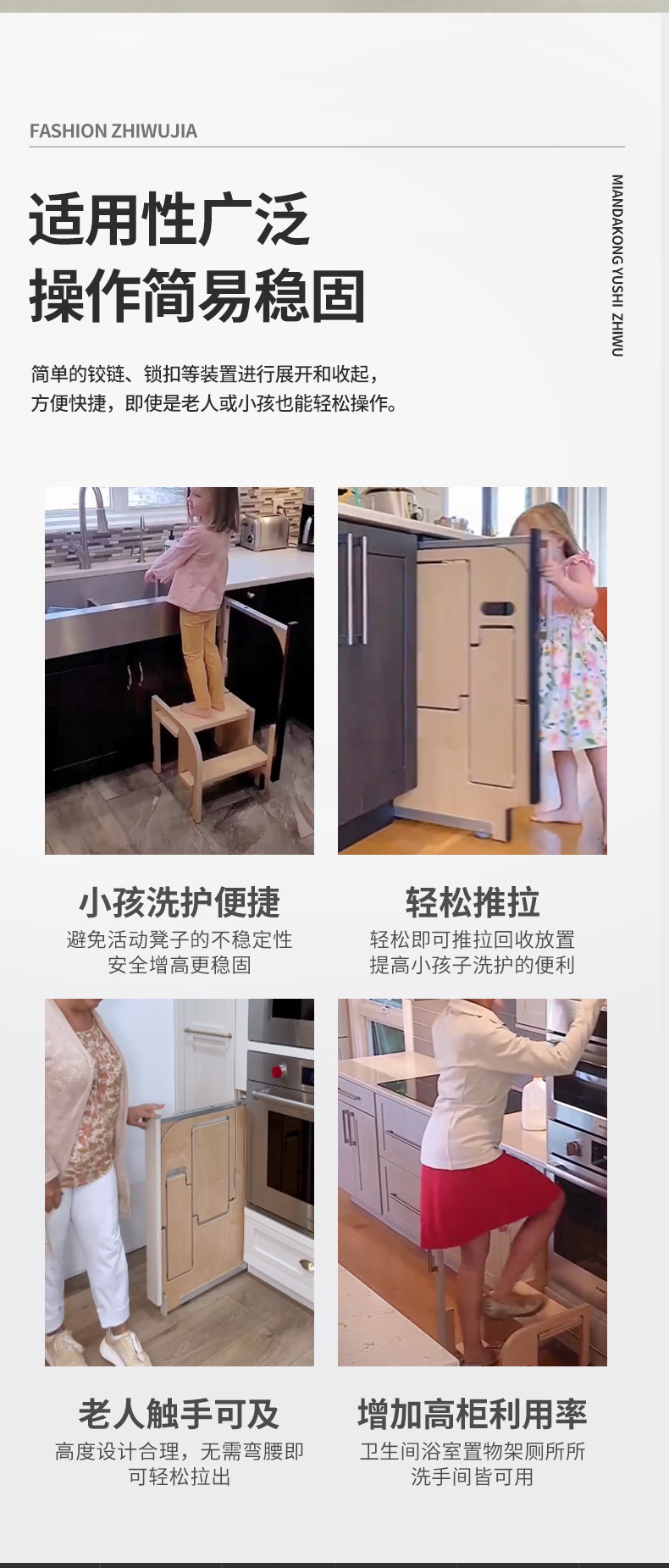 다기능 접이식 2 단계 사다리 가정용 어린이 스텝 풋 패드 주방 엘리베이터 왼쪽과 오른쪽 유니버설 임베디드 스토리지 사다리스토어 가기