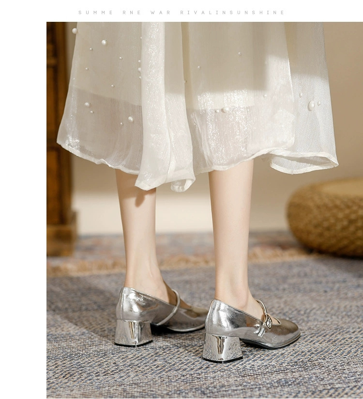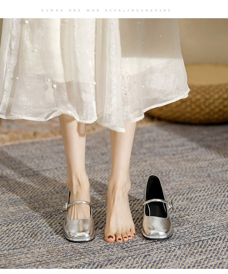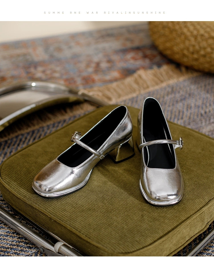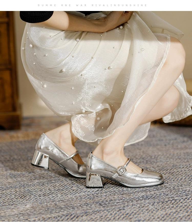 미드 힐 메리 제인 신발 2024 봄 새로운 프랑스 공주 실버 두꺼운 발 뒤꿈치 방수 플랫폼 신발 여성용 작은 실버 신발