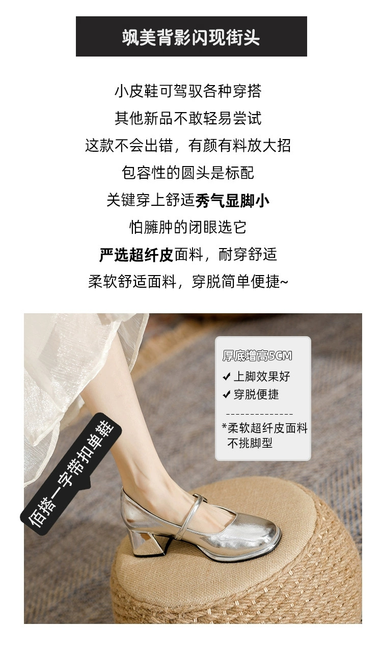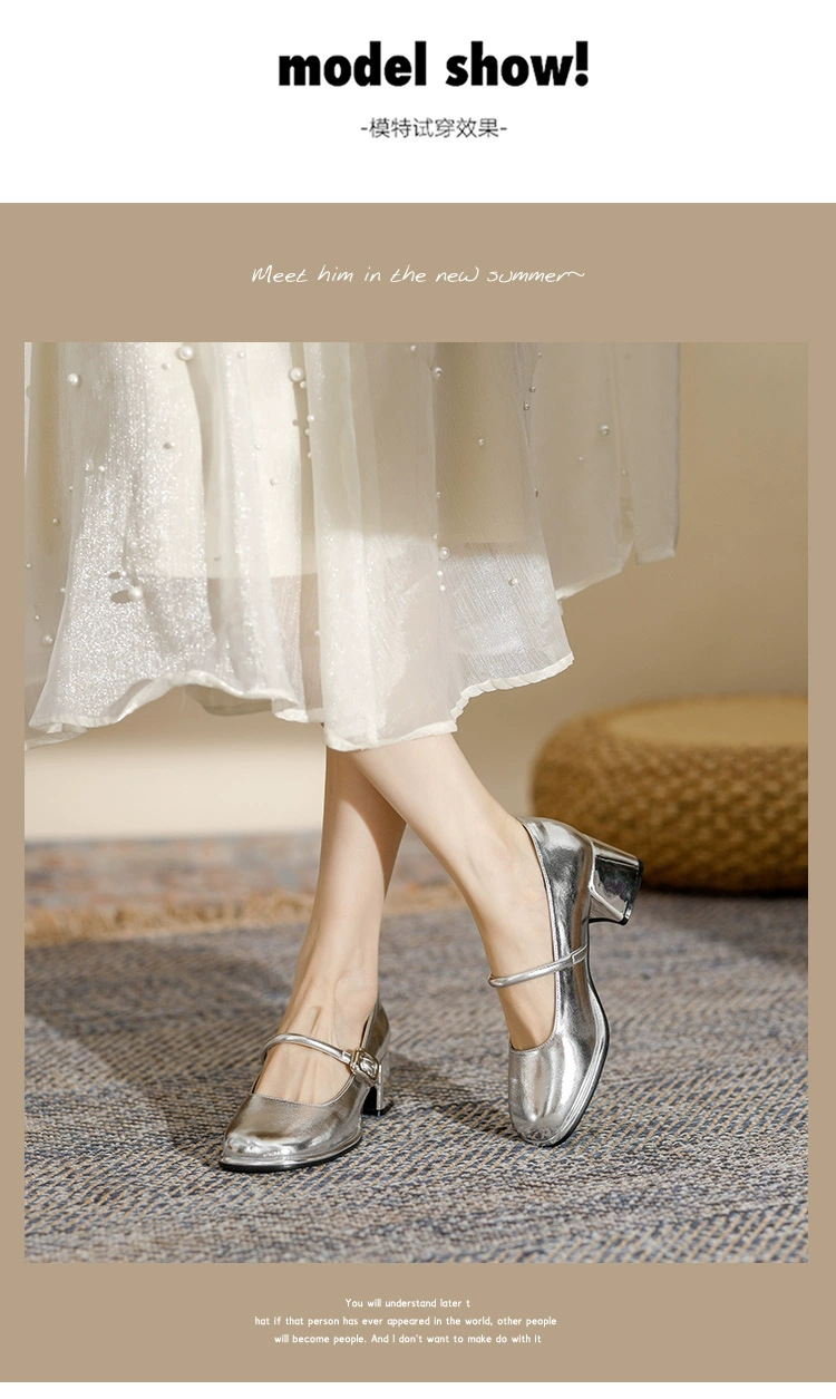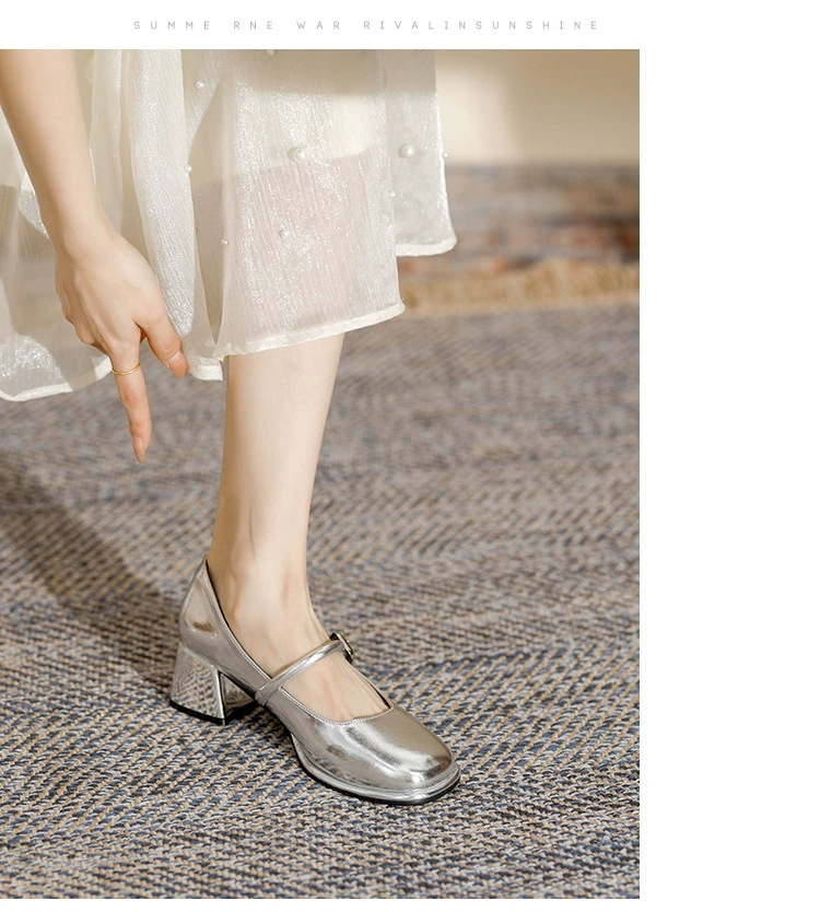 미드 힐 메리 제인 신발 2024 봄 새로운 프랑스 공주 실버 두꺼운 발 뒤꿈치 방수 플랫폼 신발 여성용 작은 실버 신발스토어 가기