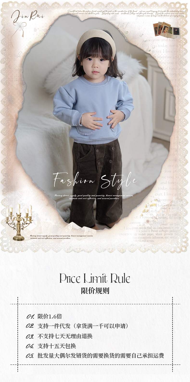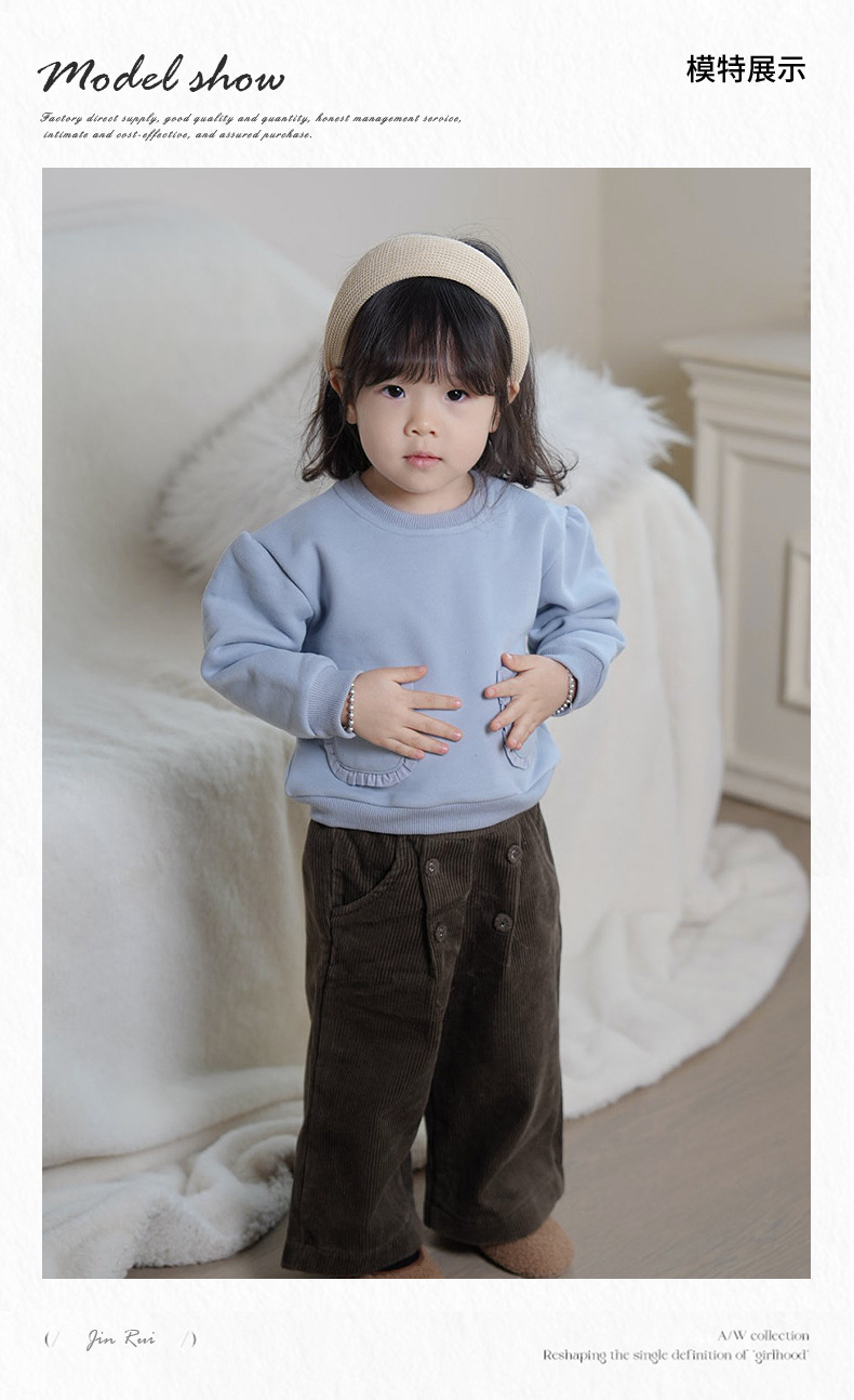 재고 LOU 한국식 아기 스미스 벨벳 어린이 땀 면 여자 올매치 기모 두꺼운 베이스 풀오버 어린이 땀