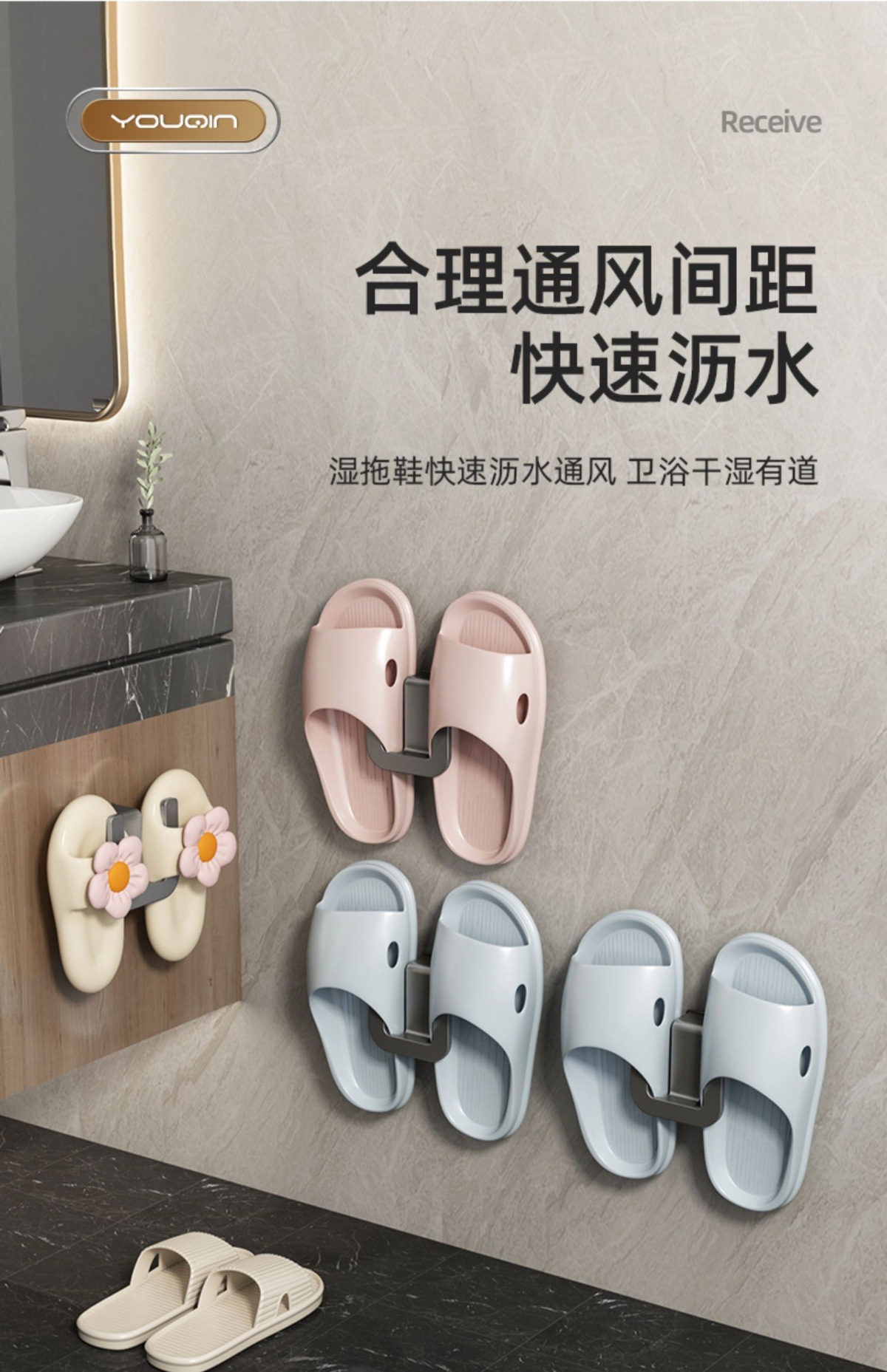 슬리퍼 스토리지 랙 펀치없는 벽 교수형 욕실 슬리퍼 랙 화장실 문 후면 슬리퍼 교수형 랙 Draining Hook스토어 가기