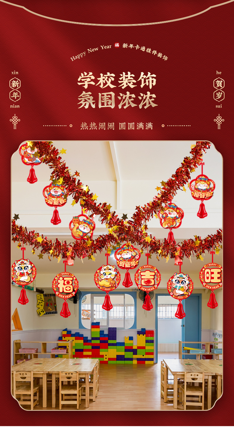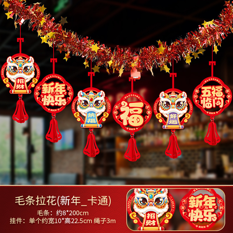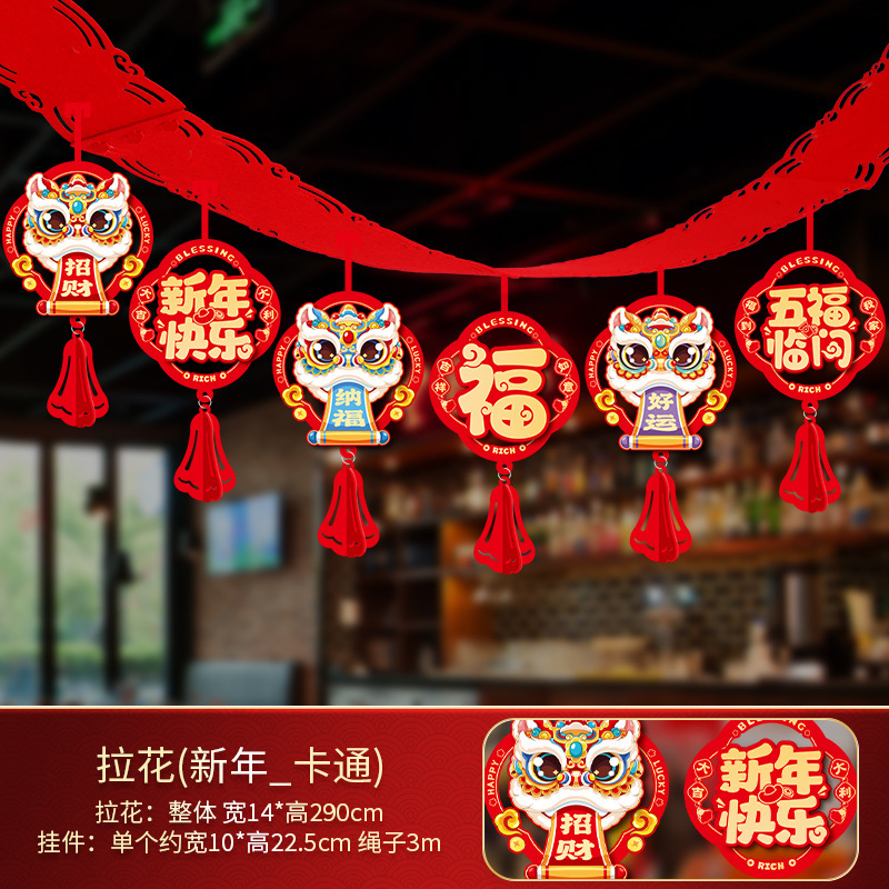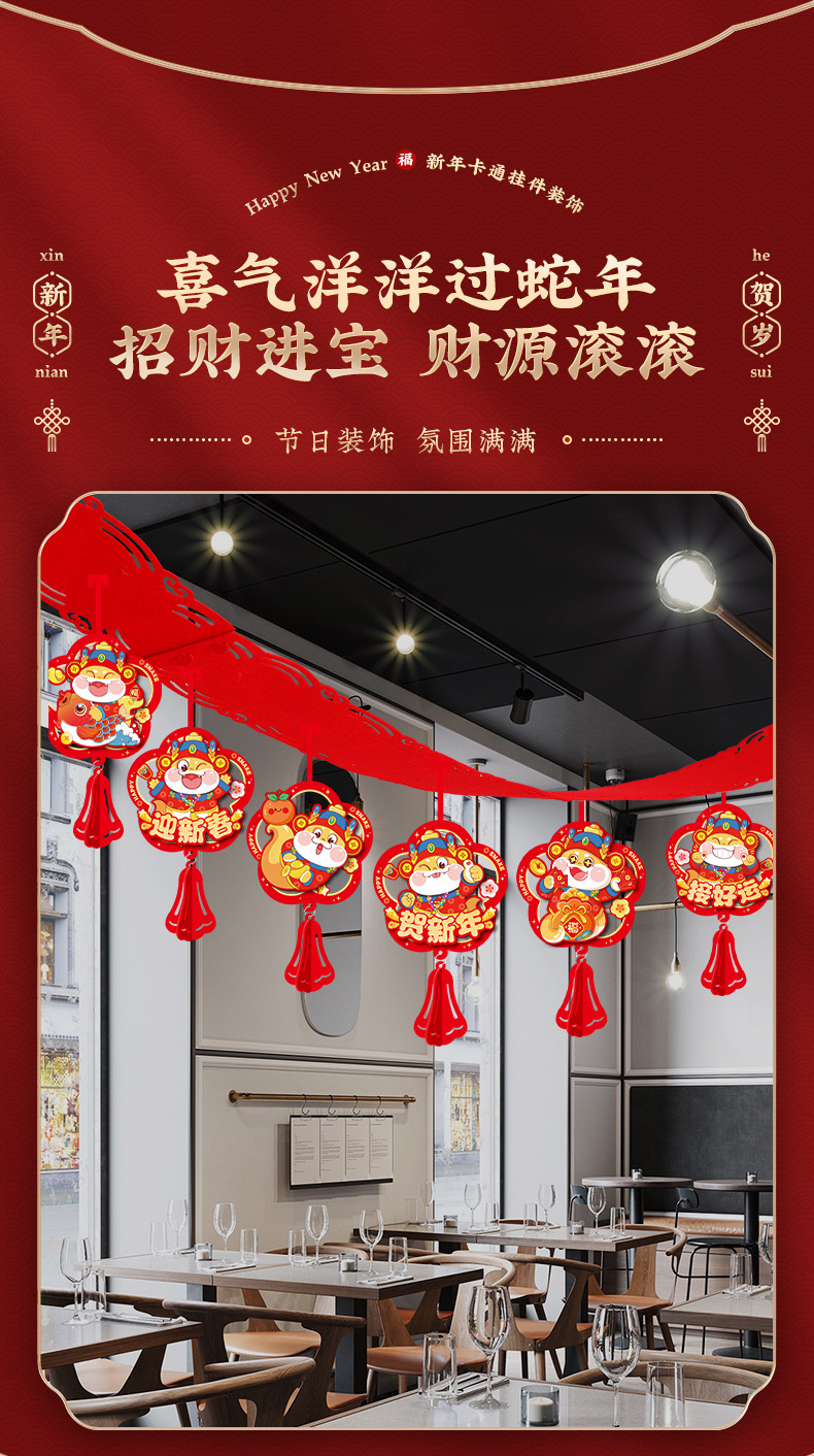 新年用品春节元旦福字装饰拉花幼儿园商场店铺橱窗布置创意吊挂饰