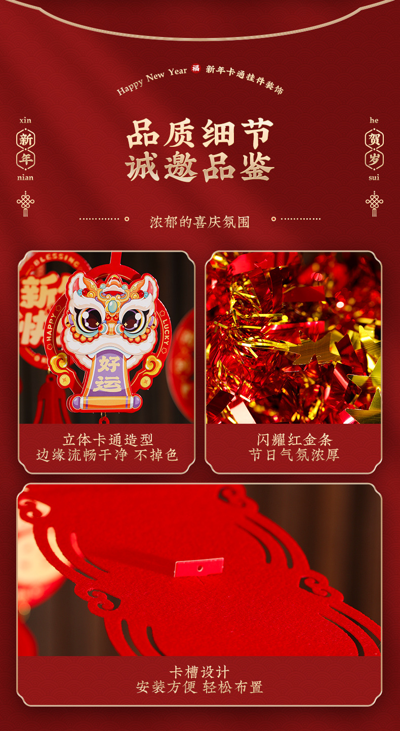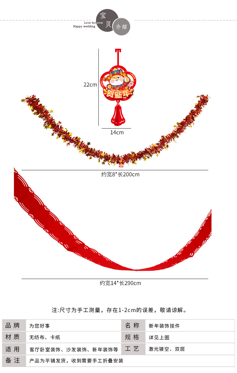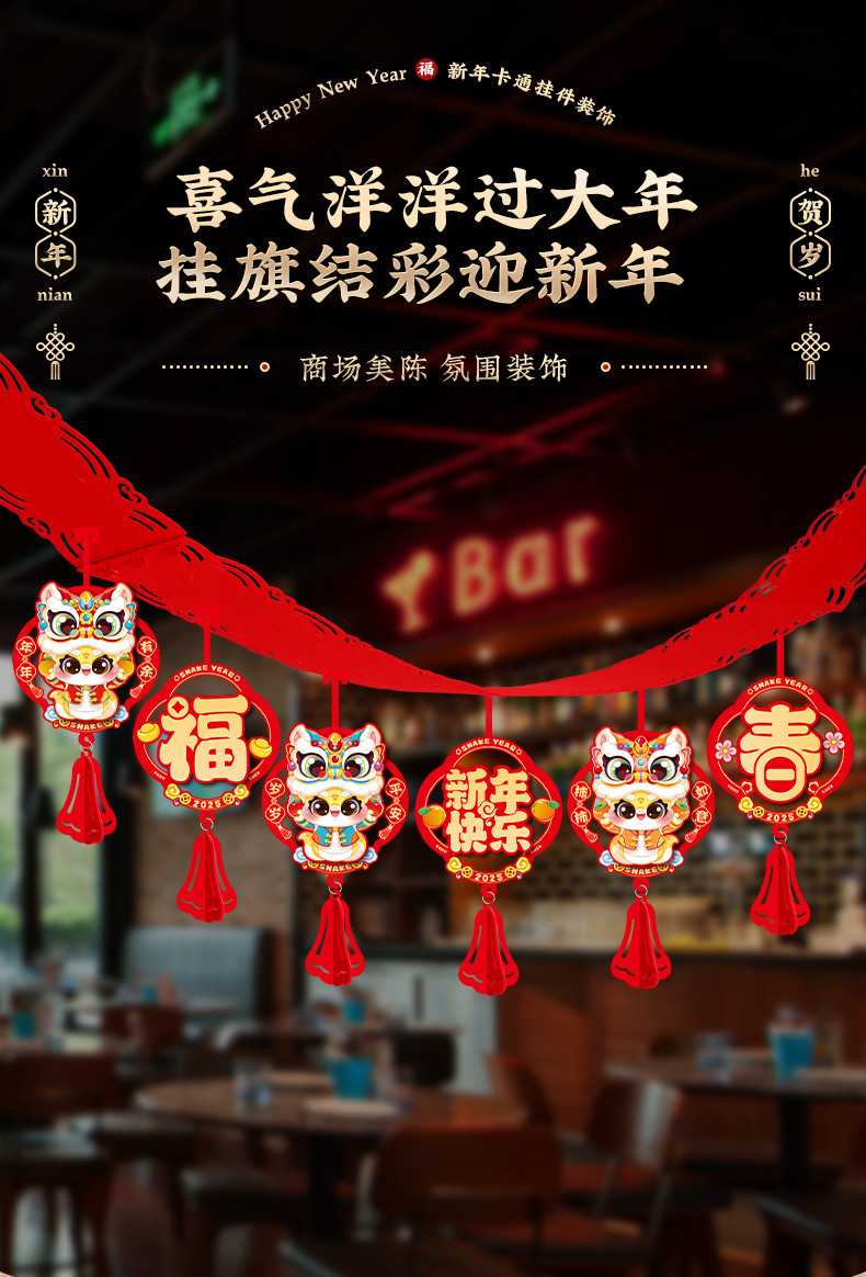新年用品春节元旦福字装饰拉花幼儿园商场店铺橱窗布置创意吊挂饰