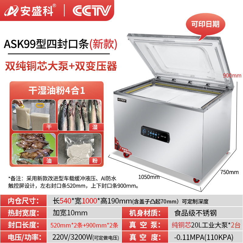 • 새로운 ASK99 향상된 유형(4개의 씰링 스트립이 확대된 유형) AI 이중 라인으로 날짜를 인쇄할 수 있습니다.