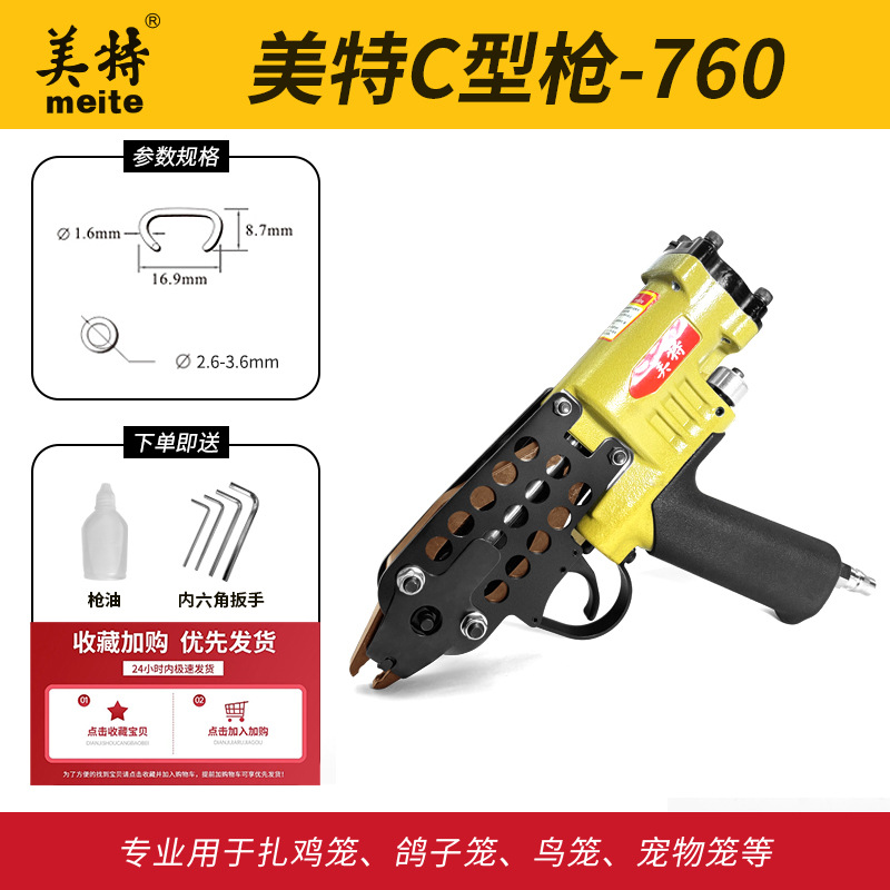 Meite C 형 총 C 형 네일 건 치킨 케이지 건 sc760 공압 치킨 케이지 바인딩 건 7c 로커리 건 C 형 네일 건