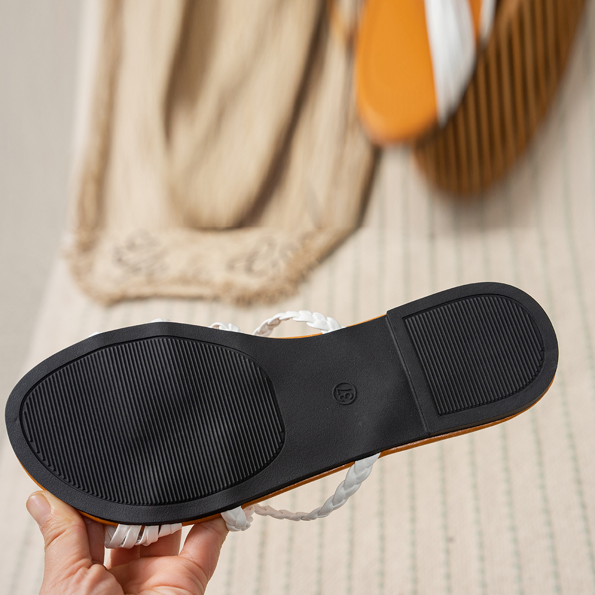 유럽과 미국의 대외 무역 플러스 사이즈 플랫 오픈 발가락 슬리퍼 여성용 간단한 꼰 크로스 벨트 경량 비치 샌들 슬리퍼스토어 가기