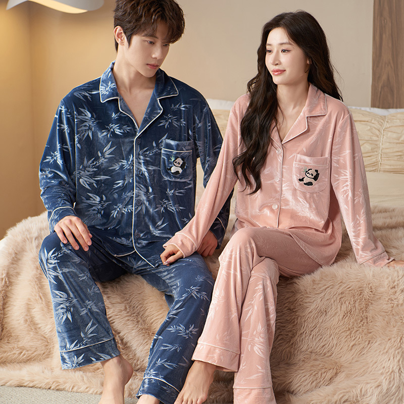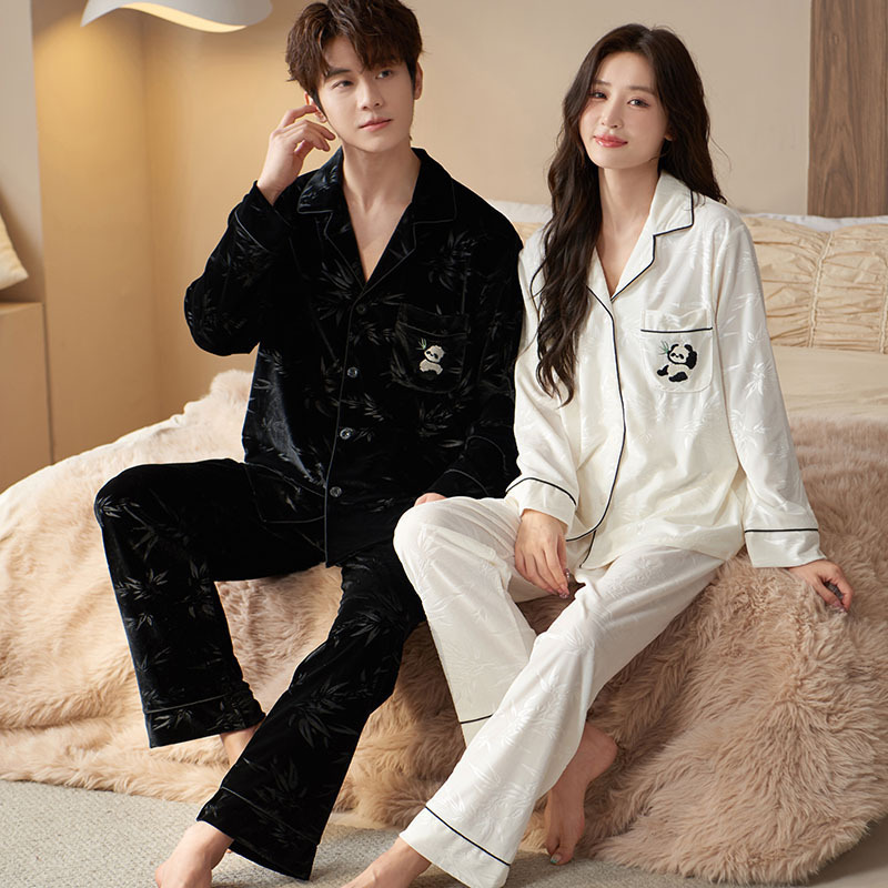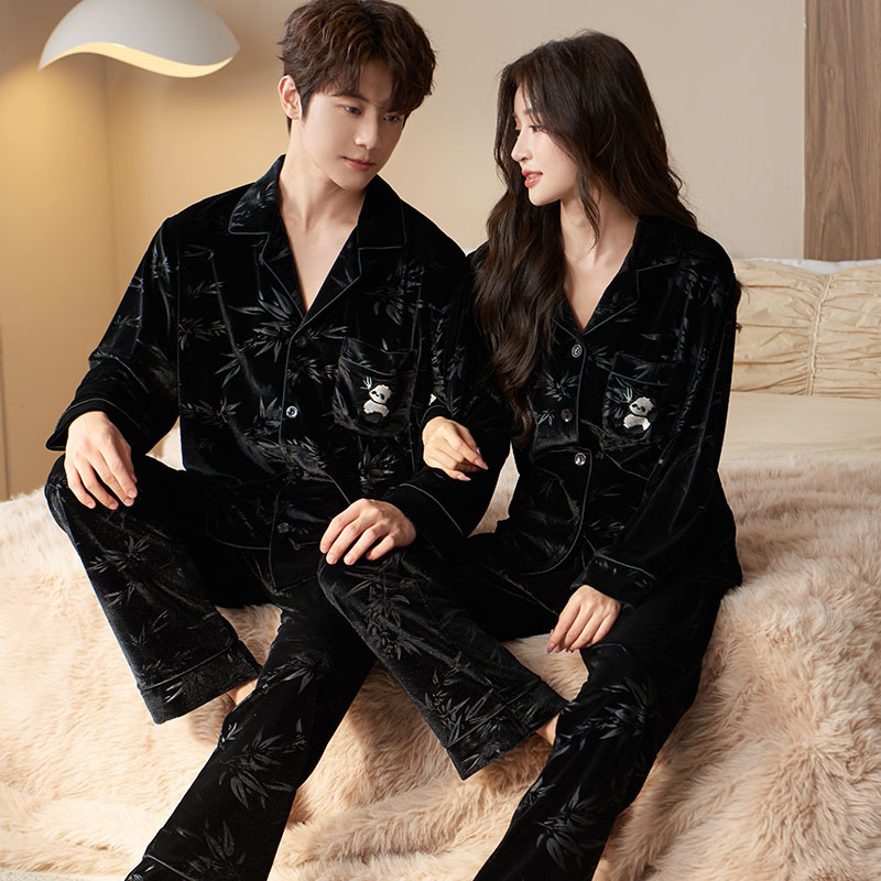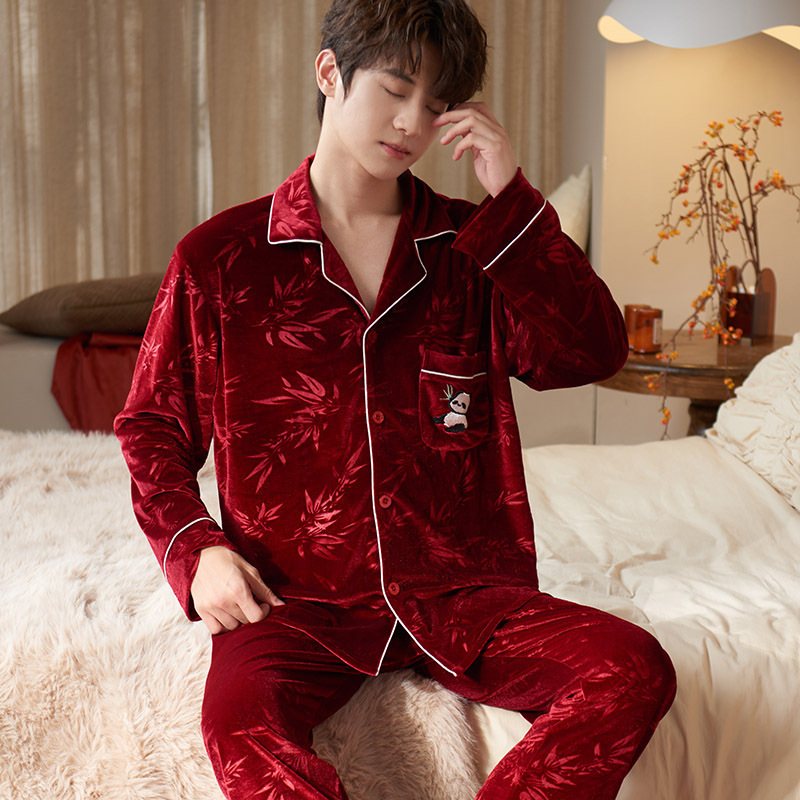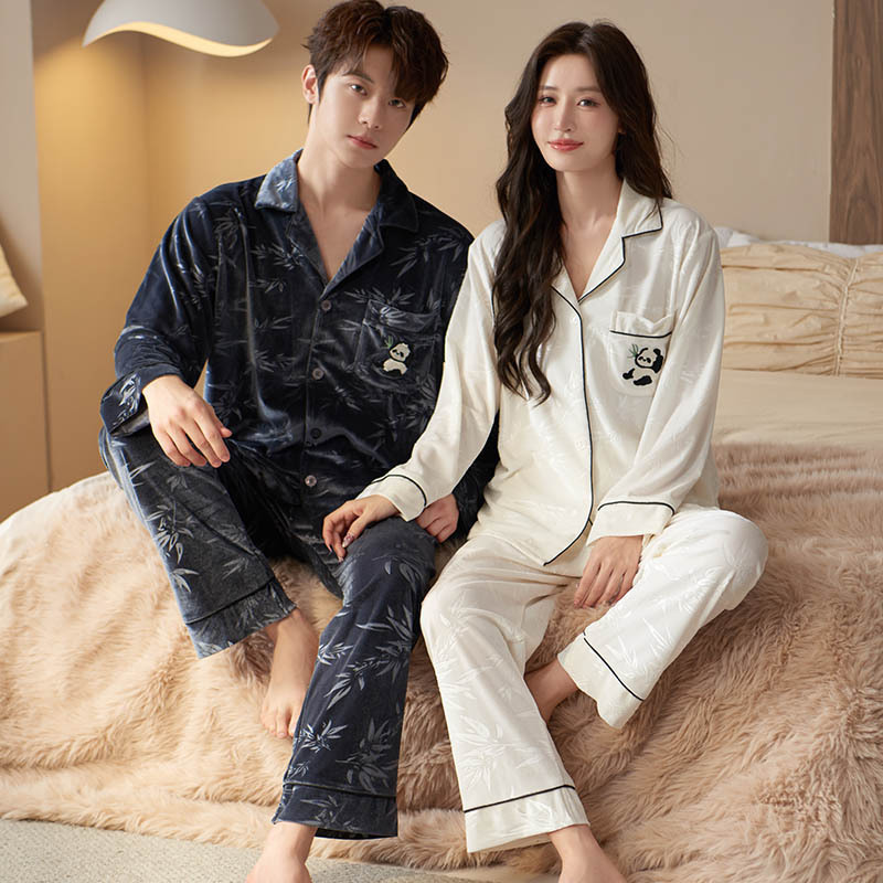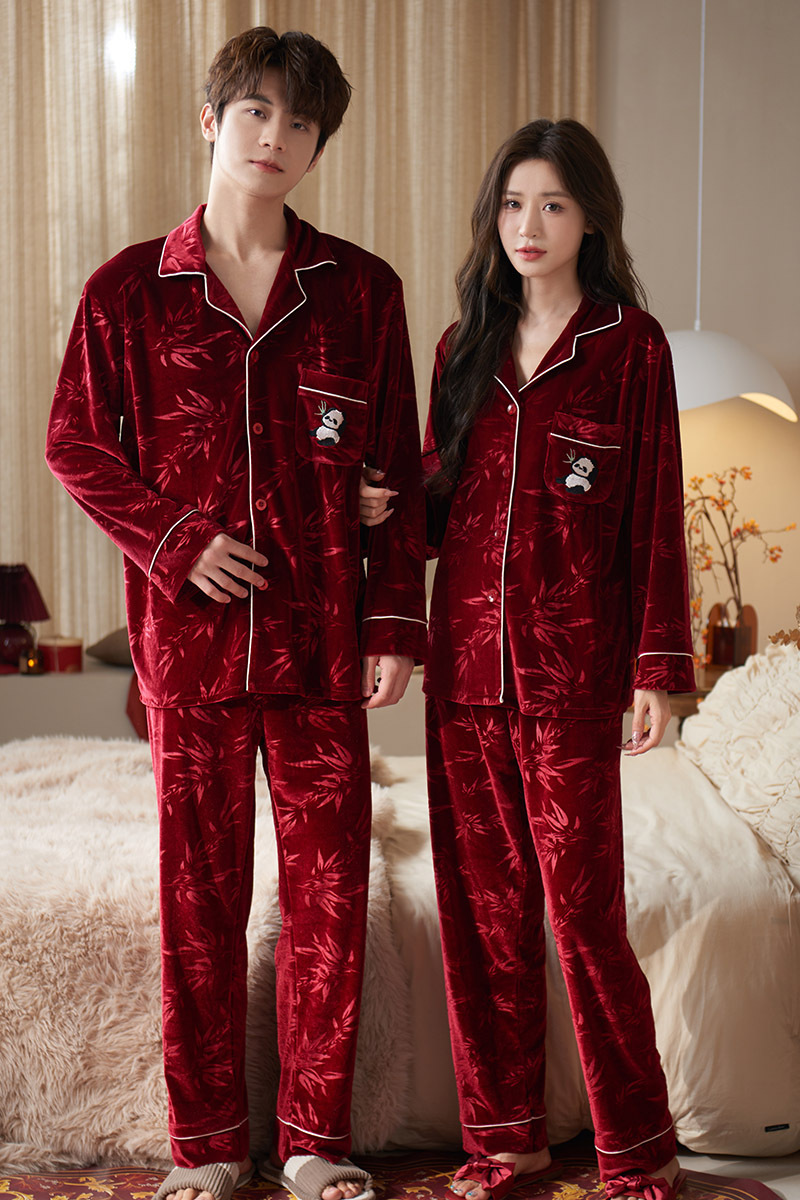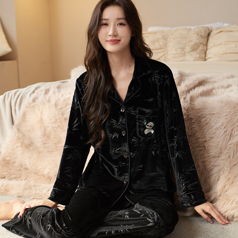 2025 가을 겨울 잠옷 여성 골든 벨벳 신혼 빨간 집 옷 세트 캐주얼 의상스토어 가기