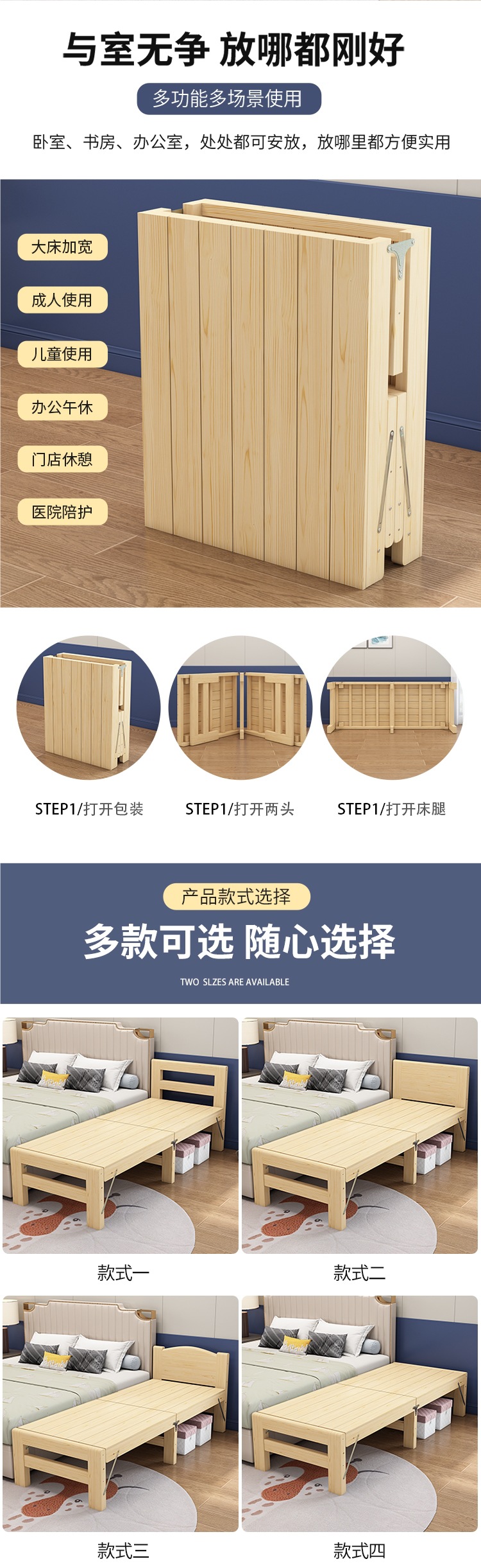 접이식 침대 확장 확장 간단한 접이식 침대 솔리드 우드 침대 엑스트라 침대 접합 침대 원활한 침대 침대 보드스토어 가기