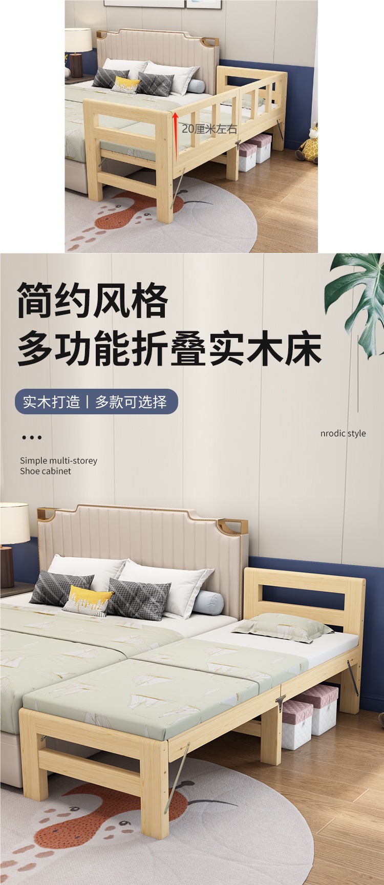 접이식 침대 확장 확장 간단한 접이식 침대 솔리드 우드 침대 엑스트라 침대 접합 침대 원활한 침대 침대 보드