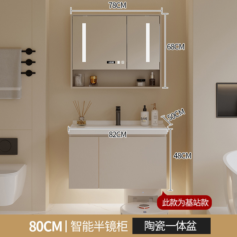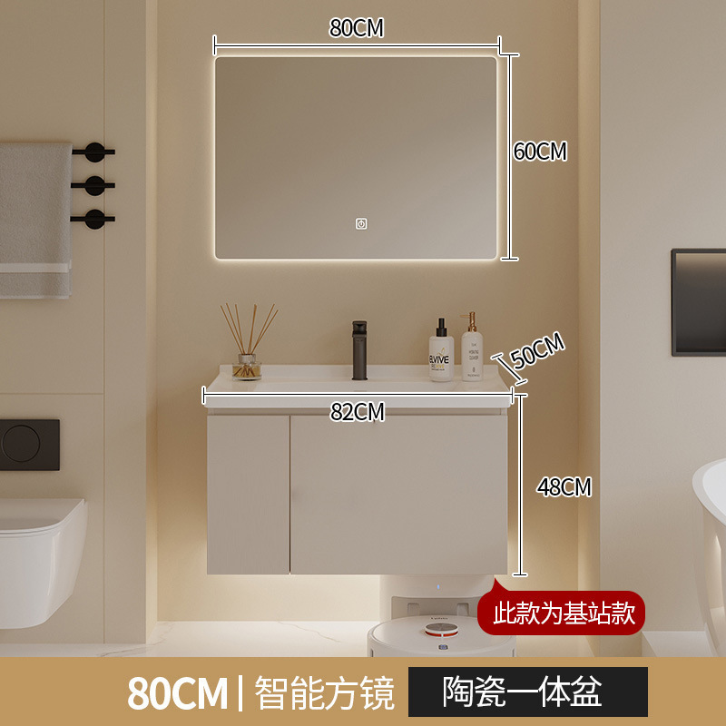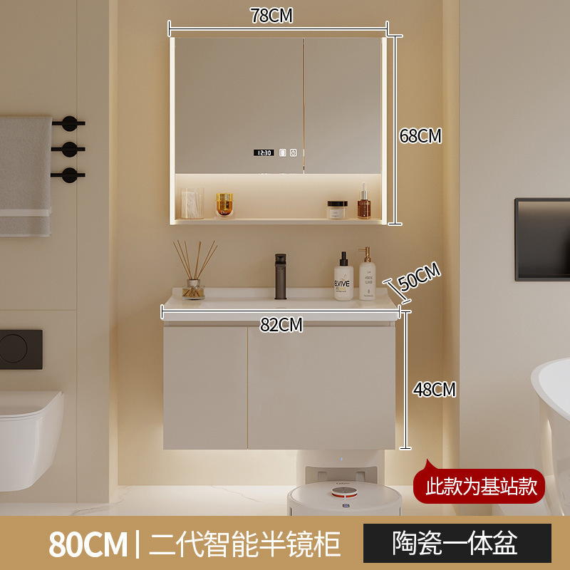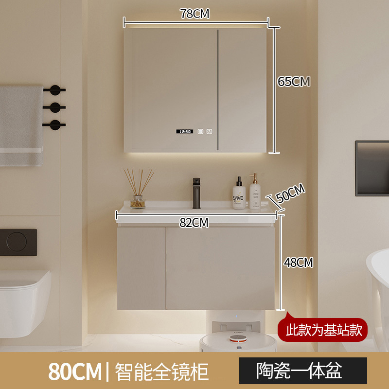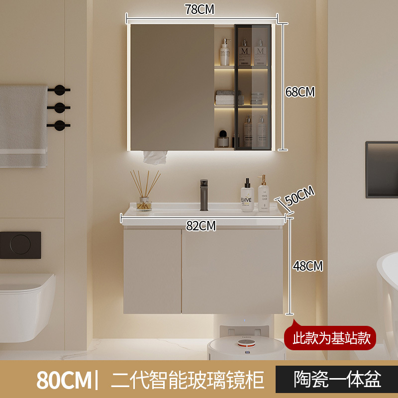 • 80 세라믹 일체형 세면대 + 2세대 유리문 스마트 거울 캐비닛 설치 포함