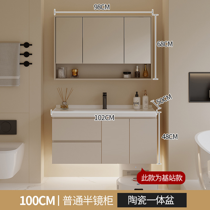 • 100 세라믹 일체형 세면대 + 일반 풀 미러 캐비닛이 설치와 함께 제공됩니다.