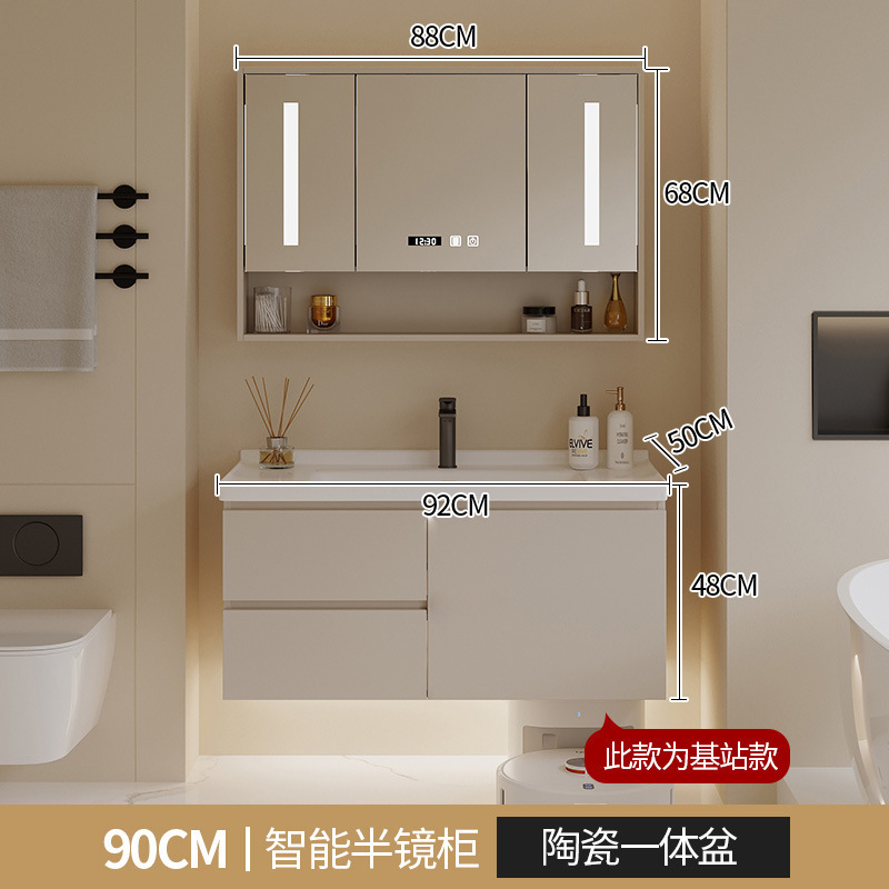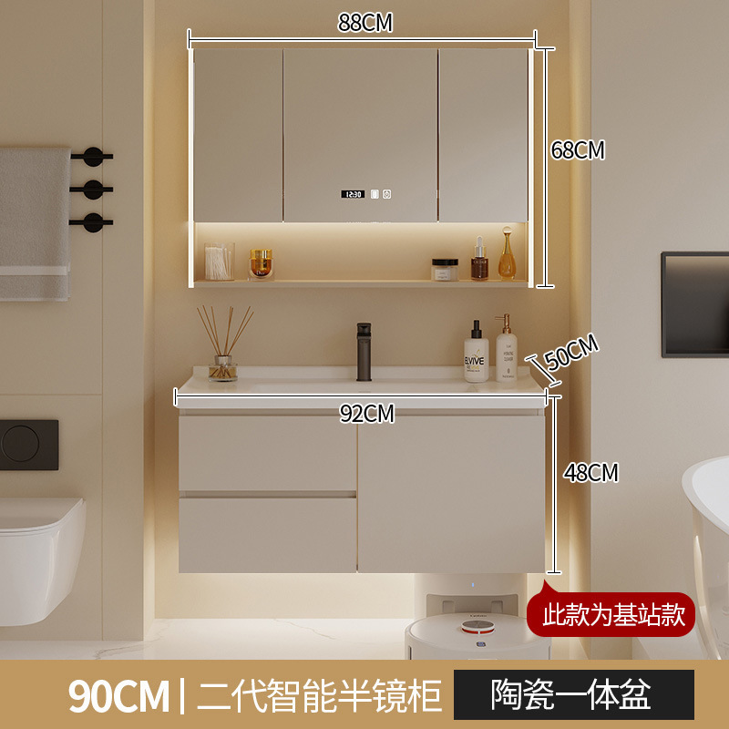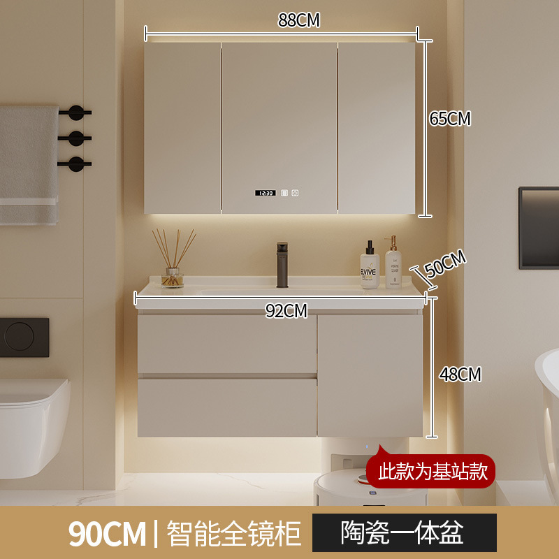 • 90 세라믹 일체형 세면대 + 2세대 유리문 스마트 거울 캐비닛 설치 포함