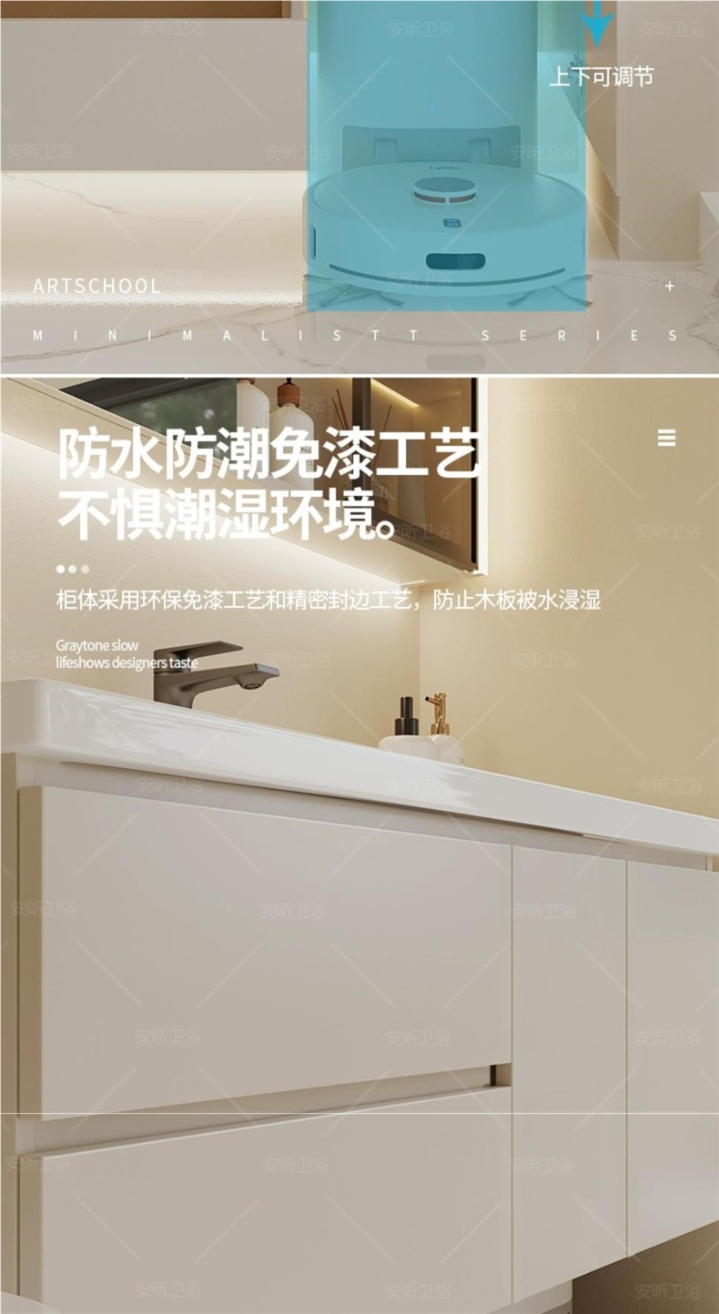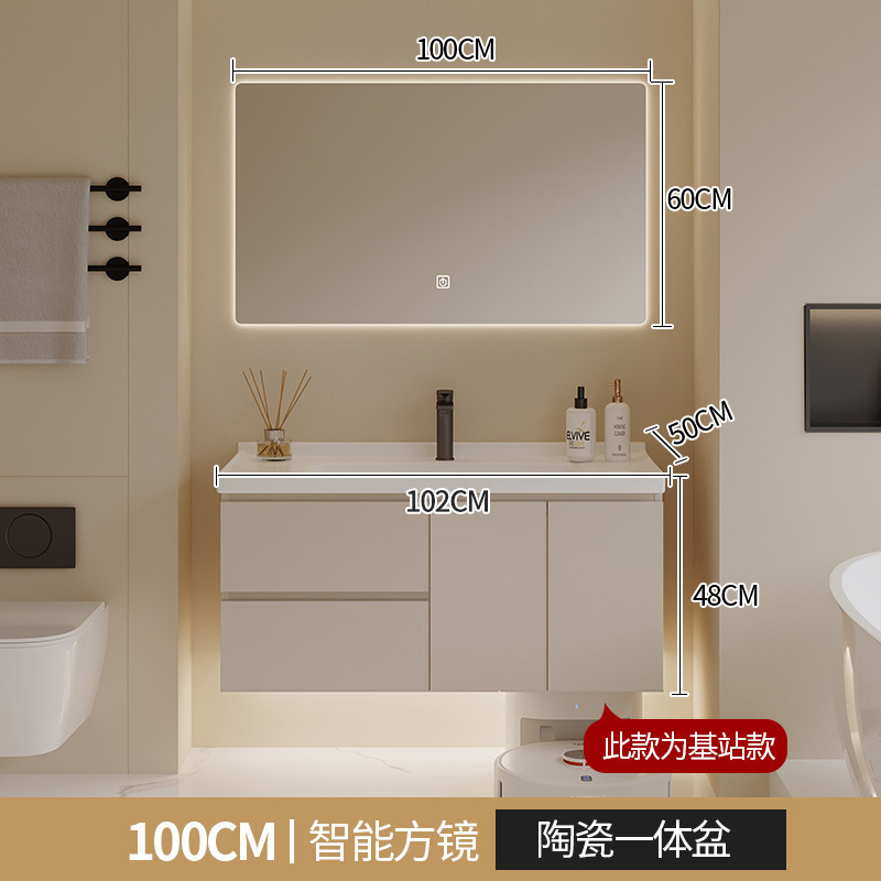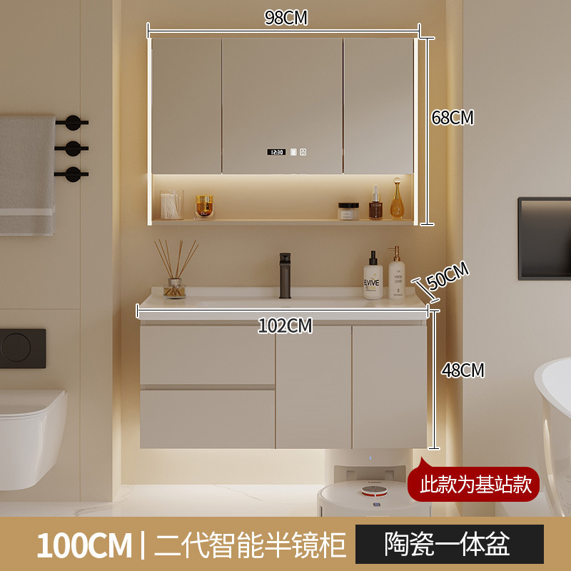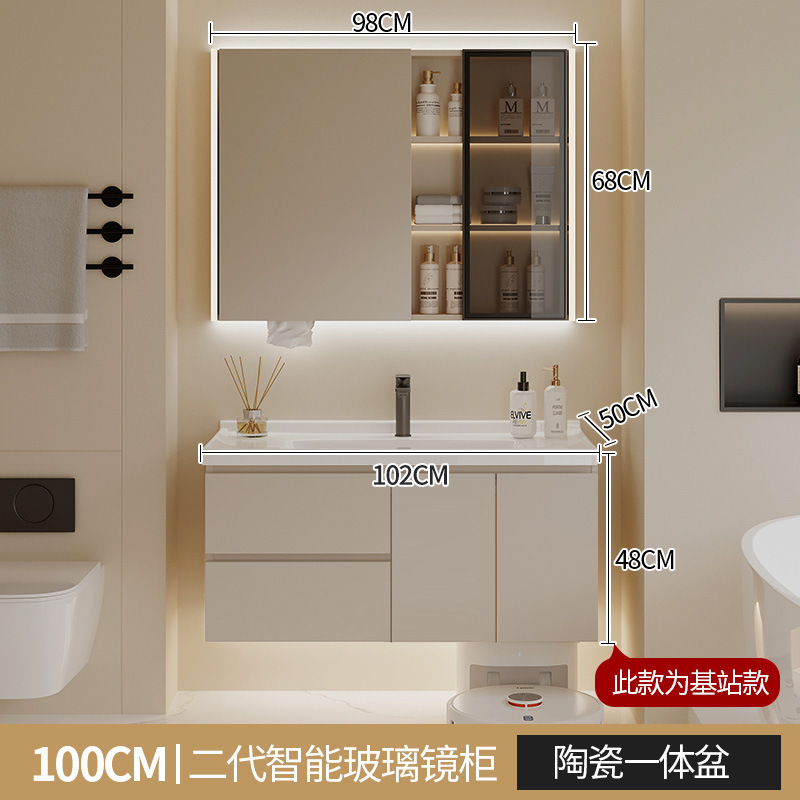 • 100 세라믹 일체형 세면대 + 2세대 유리문 스마트 거울 캐비닛 설치 포함