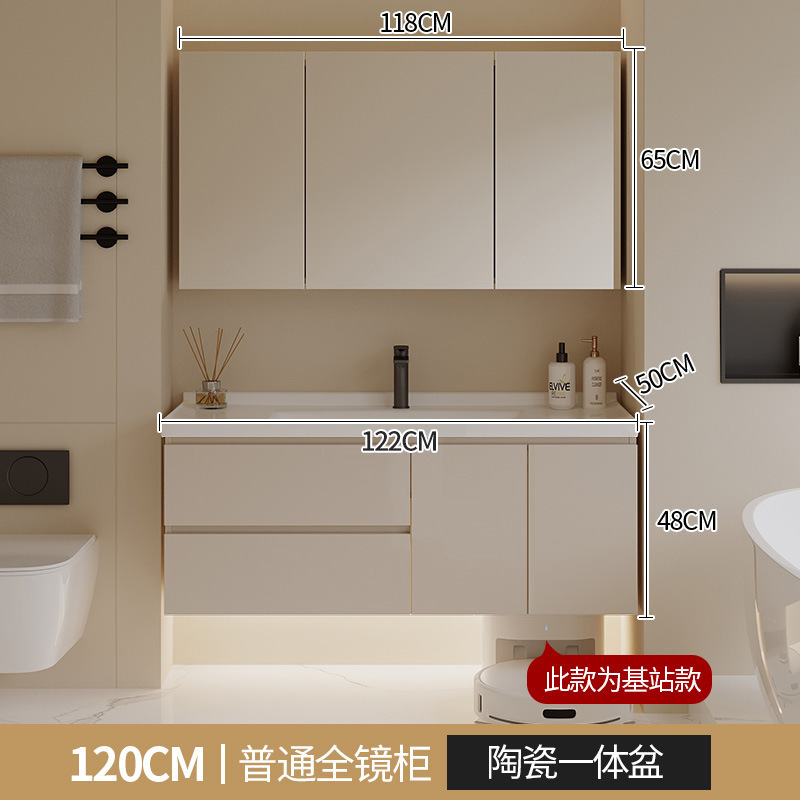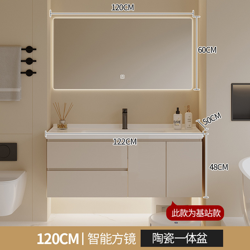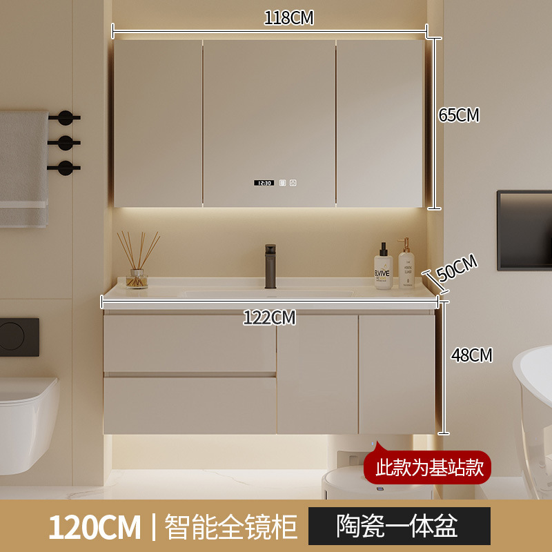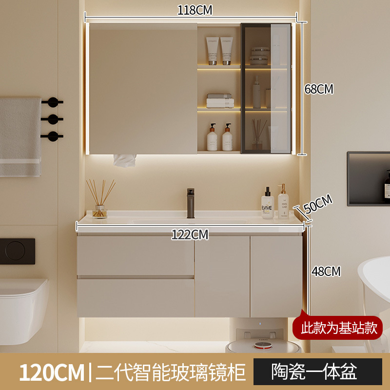 • 120 세라믹 일체형 세면대 + 2세대 유리문 스마트 거울 캐비닛 설치 포함