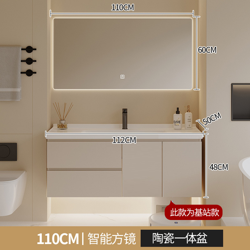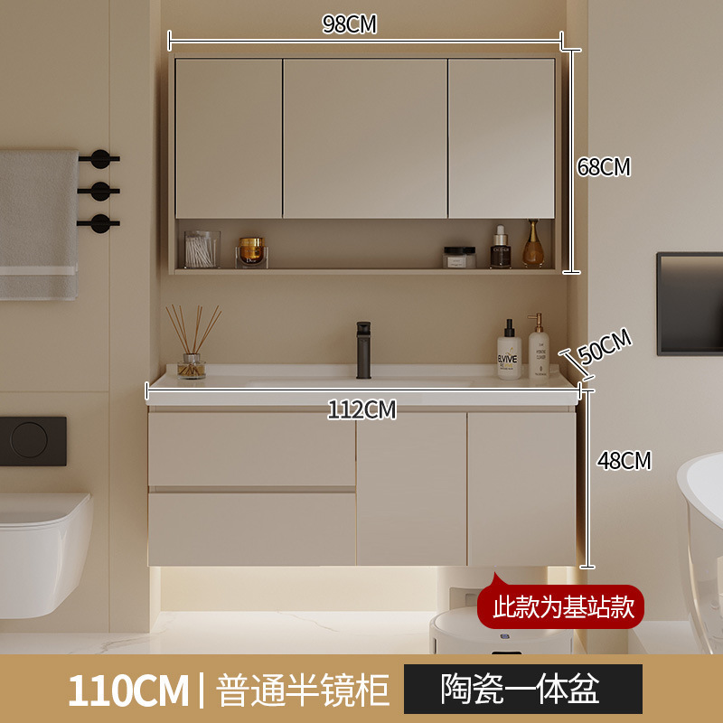 • 110 세라믹 일체형 세면대 + 일반 반접착 거울 캐비닛 설치 포함