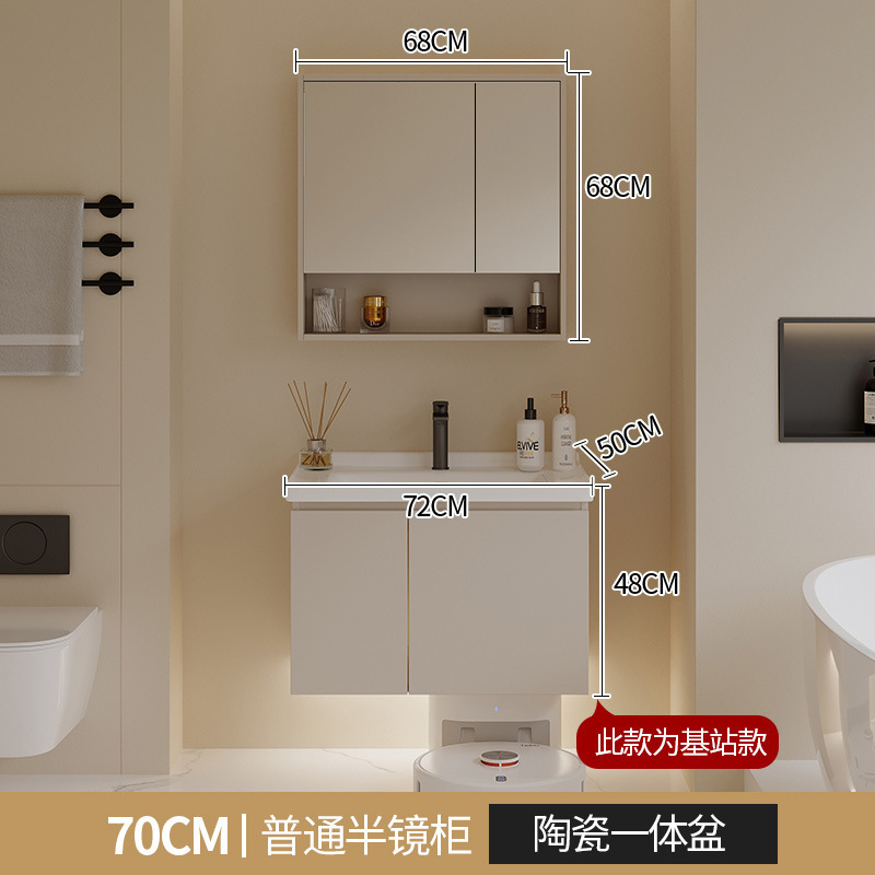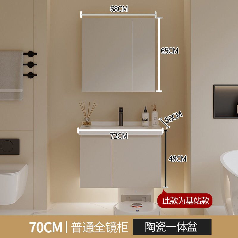 • 70 세라믹 일체형 세면대 + 일반 풀 미러 캐비닛 설치 포함