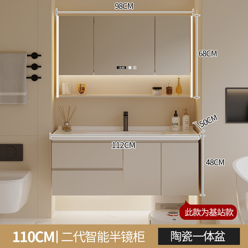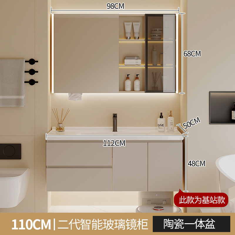• 110 세라믹 일체형 세면대 + 2세대 유리문 스마트 거울 캐비닛 설치 포함