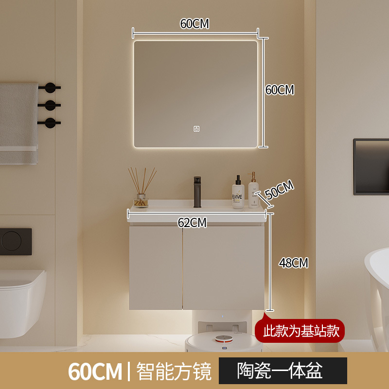 • 60 세라믹 일체형 세면대 + 일반 풀 미러 캐비닛 설치 포함