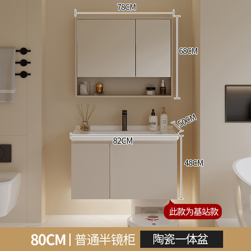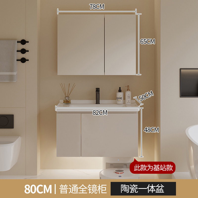 • 80 세라믹 일체형 세면대 + 일반 풀 미러 캐비닛이 설치와 함께 제공됩니다.