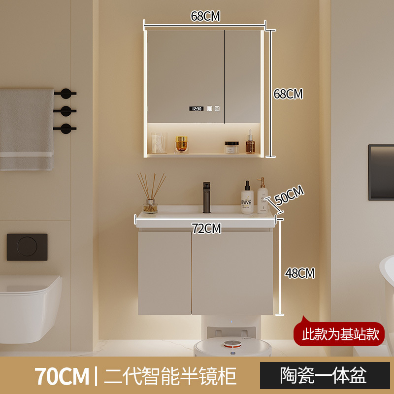 • 70 세라믹 일체형 세면대 + 2세대 유리문 스마트 거울 캐비닛 설치 포함