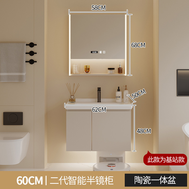 • 80 세라믹 일체형 세면대 + 스마트 풀 미러 캐비닛이 설치와 함께 제공됩니다.