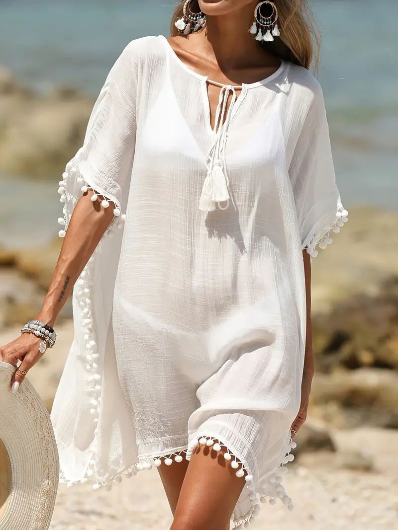 Cross Border 2025 여름 핫 세일 새로운 도착 아마존 해변 휴가 모피 볼 레이스 비키니 블라우스 비치 원피스스토어 가기