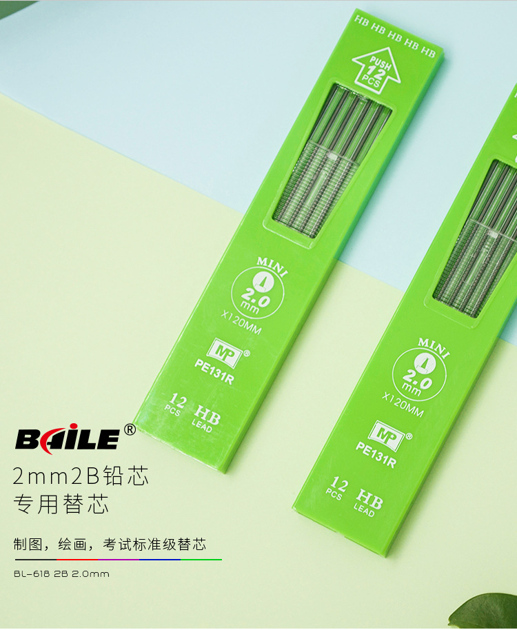 Baile 2B 연필 리필 2.0mm 리필 도매 BL-618 기계 연필 수지 리필