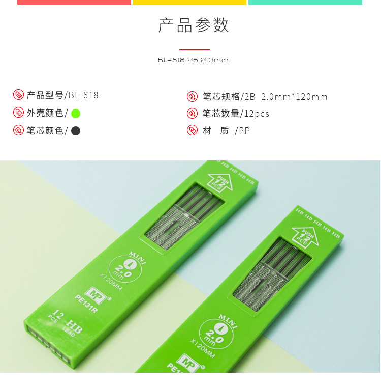 Baile 2B 연필 리필 2.0mm 리필 도매 BL-618 기계 연필 수지 리필스토어 가기