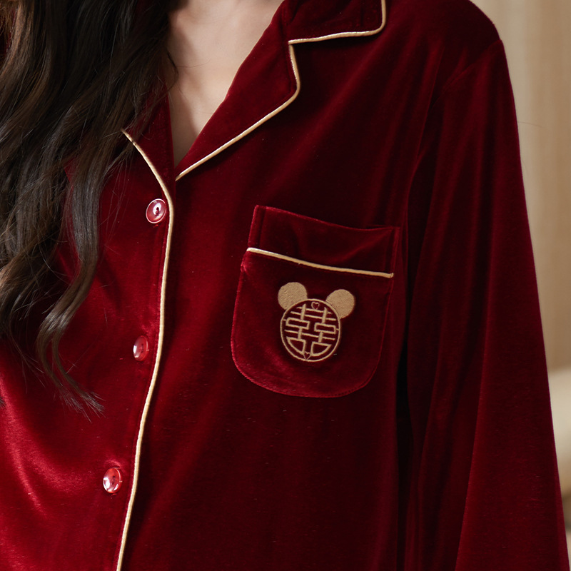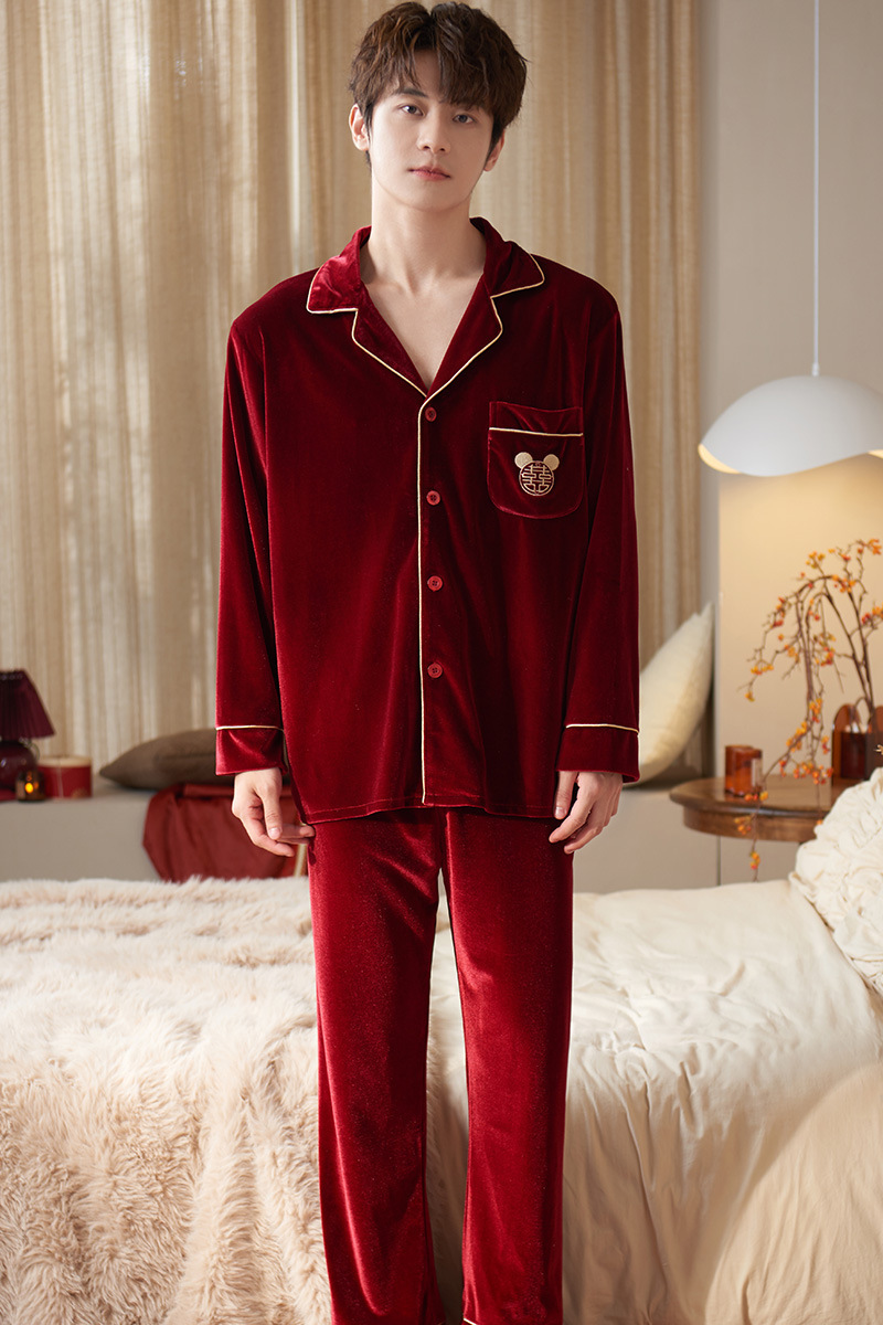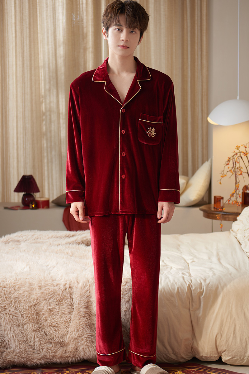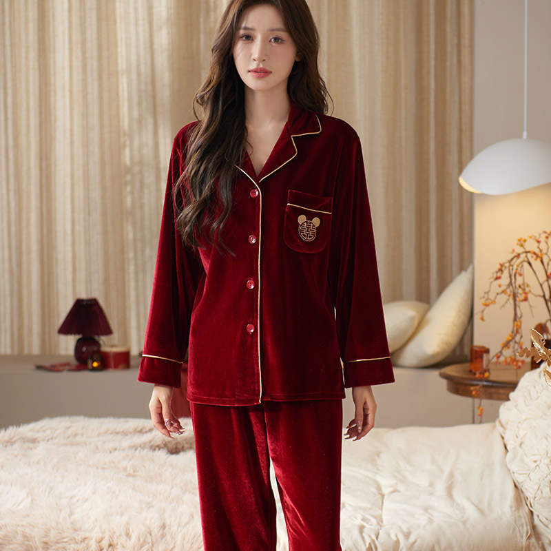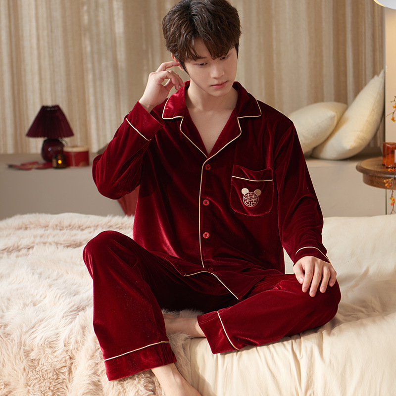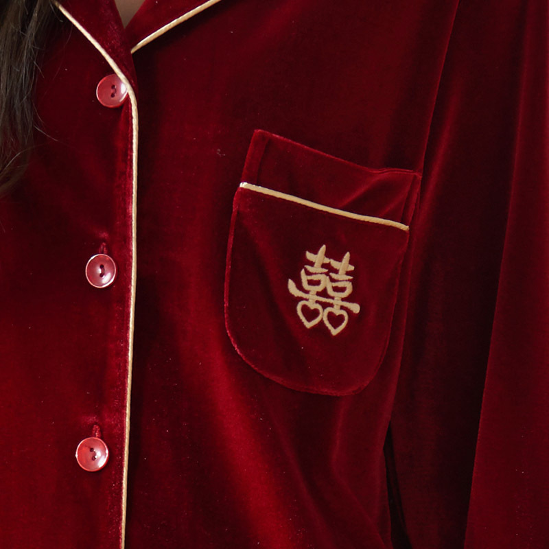 2025년 결혼 신혼부부 잠옷 여성용 와인 레드 가을 겨울 골드 벨벳 럭셔리 남성용 고급 잠옷스토어 가기