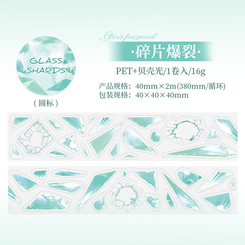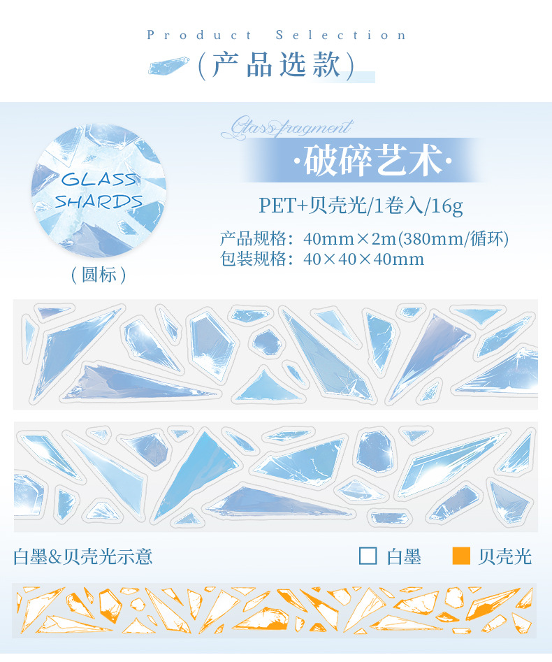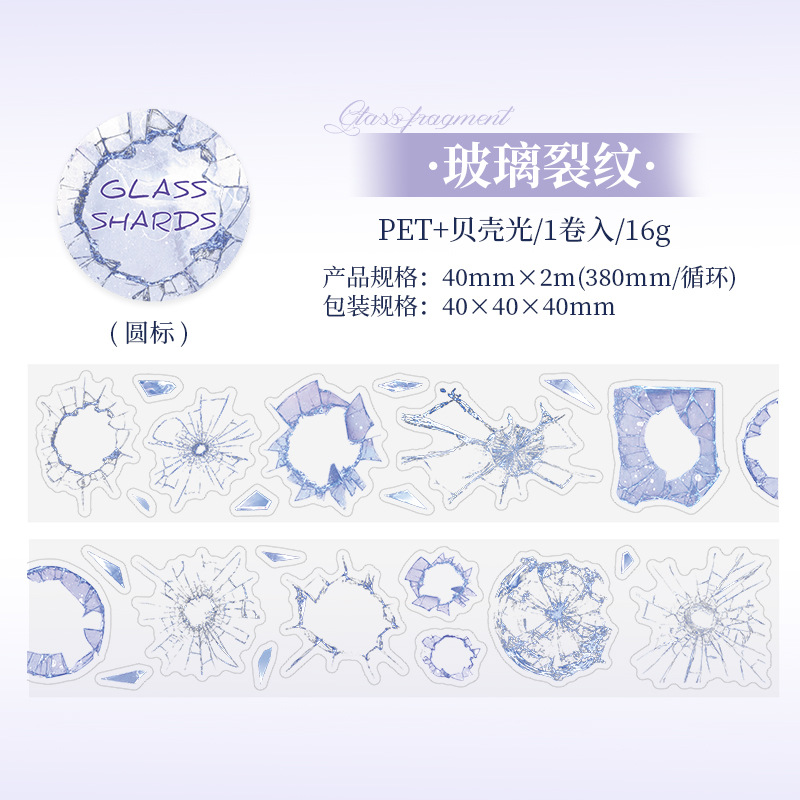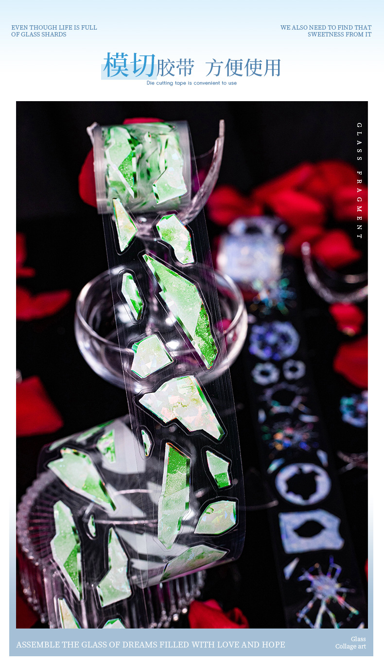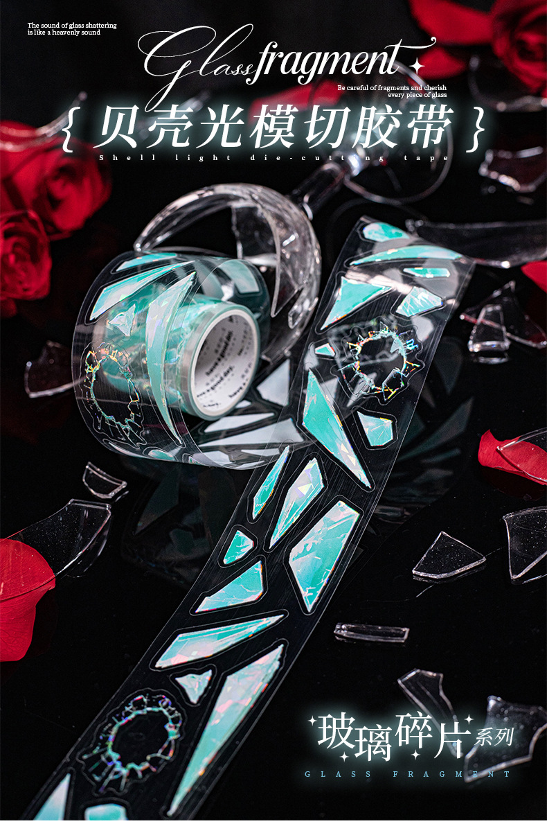 아름다운 날 쉘 라이트 다이 컷 테이프 유리 조각 시리즈 4 조각 소재 장식 DIY 스티커