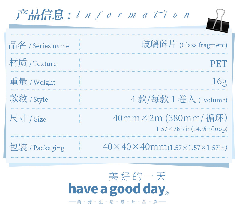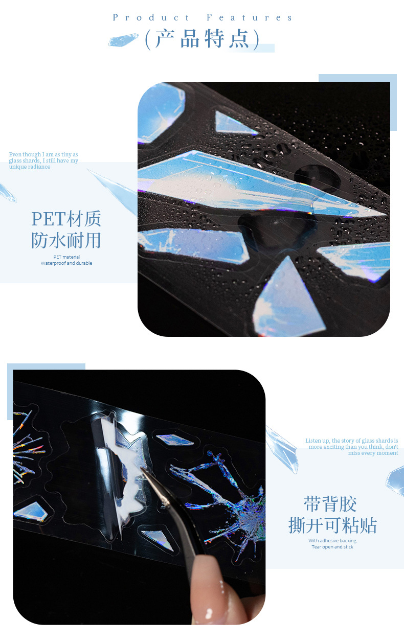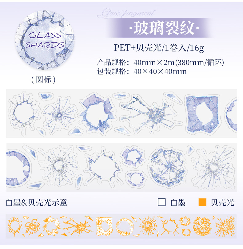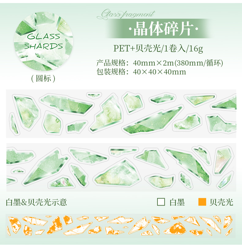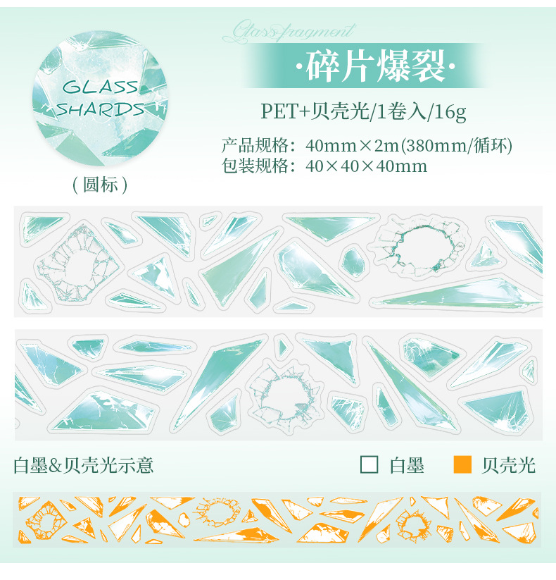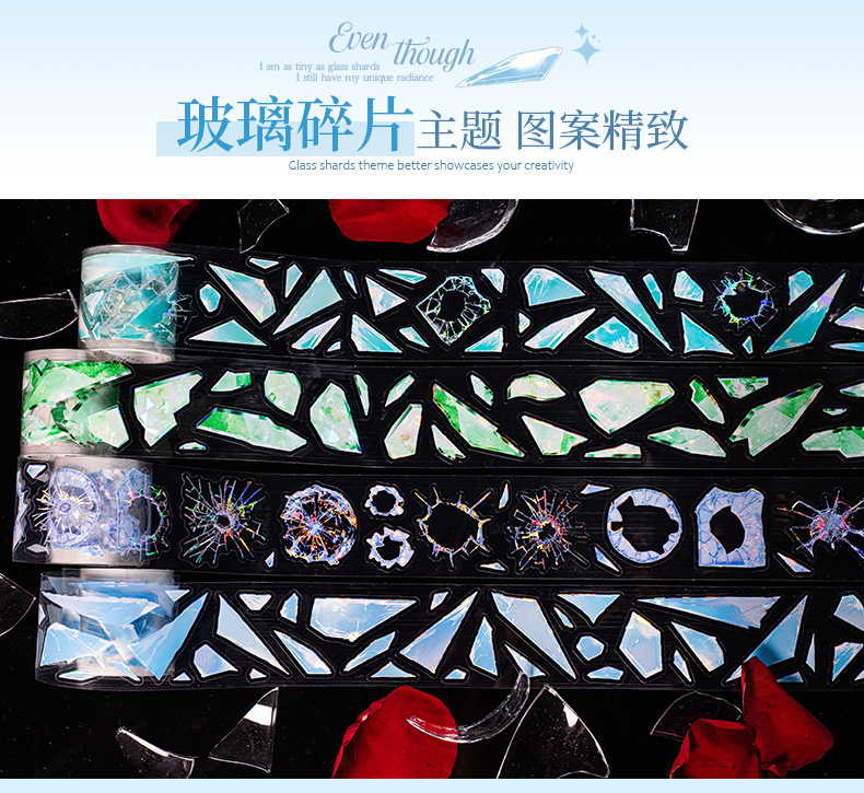아름다운 날 쉘 라이트 다이 컷 테이프 유리 조각 시리즈 4 조각 소재 장식 DIY 스티커