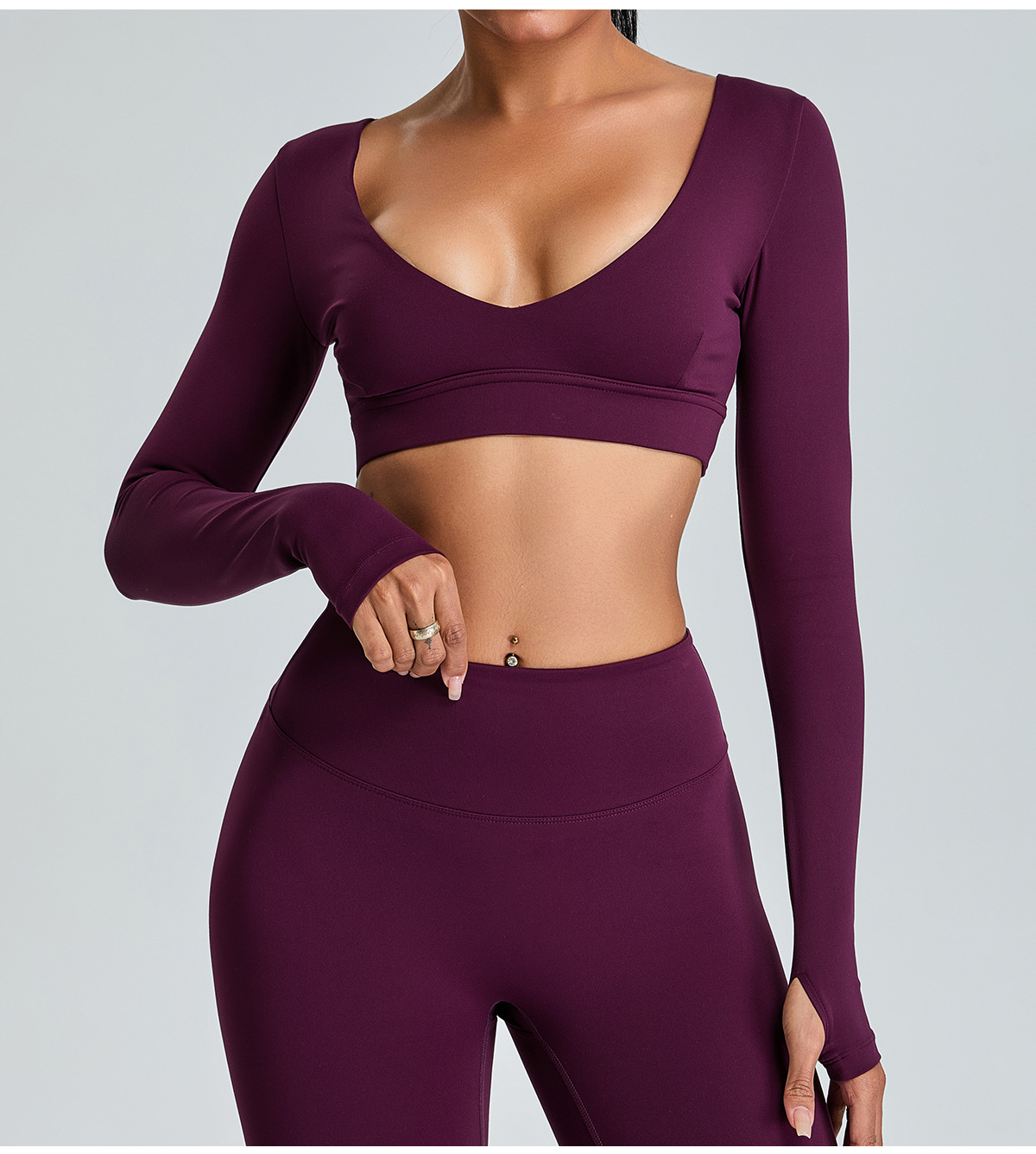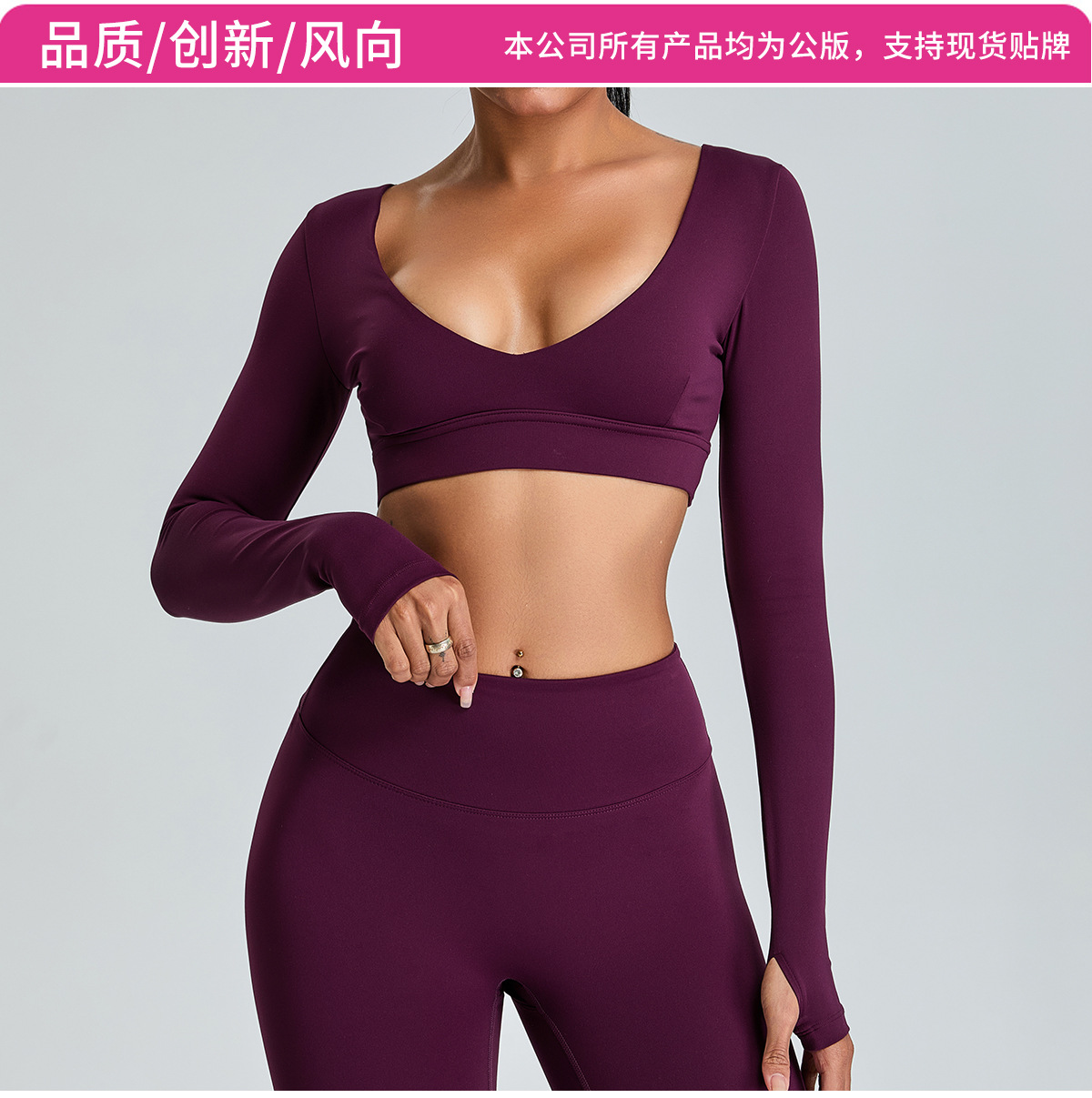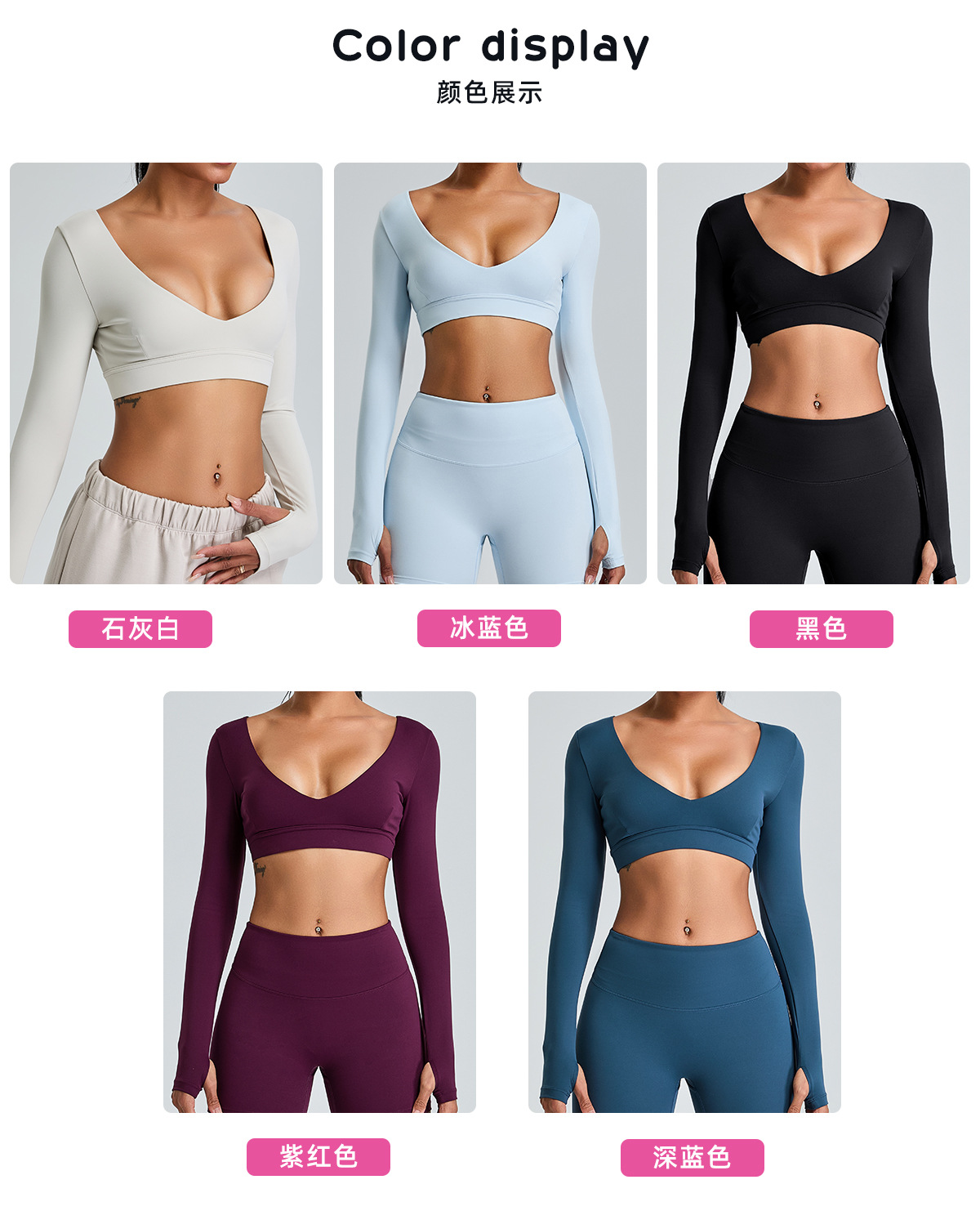 국경 간 새로운 순수 V 넥 요가 탑 여성용 슬림 핏 짧은 긴팔 티셔츠 야외 빠른 건조 꽉 끼는 피트니스 옷